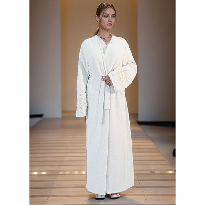 성시위안의 에테르 화이트 오픈 아바야로 옷장에 우아함을 더해 보세요. 특별한 행사에 참석하거나 일상적인 룩을 업그레이드 하고 싶을 때, 이 아름다운 아바야는 당신을 진정한 패션 아이콘으로 느끼게 할 것입니다. 아름답고 우아한 이 아바야의 매력을 직접 경험하고 옷장에 미니멀한 우아함을 더해 보십시오.