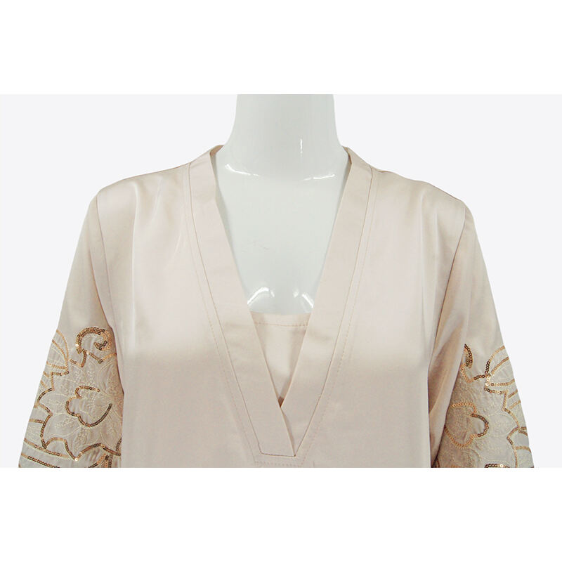 Introduksjon av den fantastiske og sofistikerte Shengshiyuan Customization Elegant Arabian Dress Abaya for muslinske kvinner. Denne vakre V-hals broderte fransetrøye er det perfekte valget for enhver spesiell anledning, med sitt elegante design og luksuriøse detaljer.