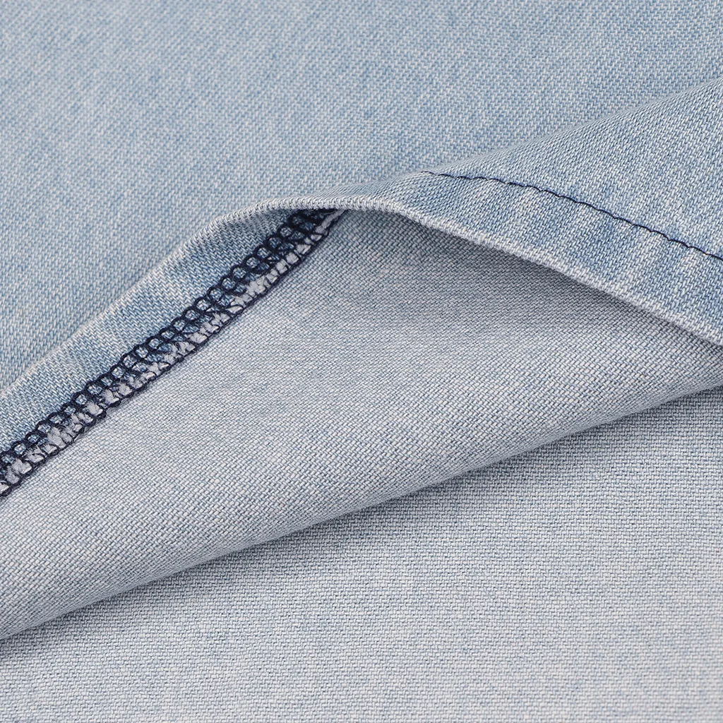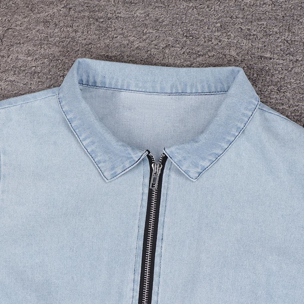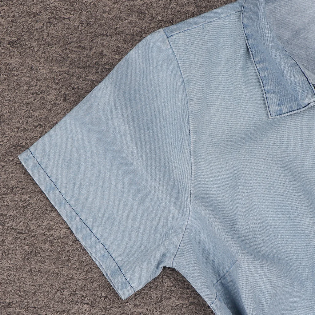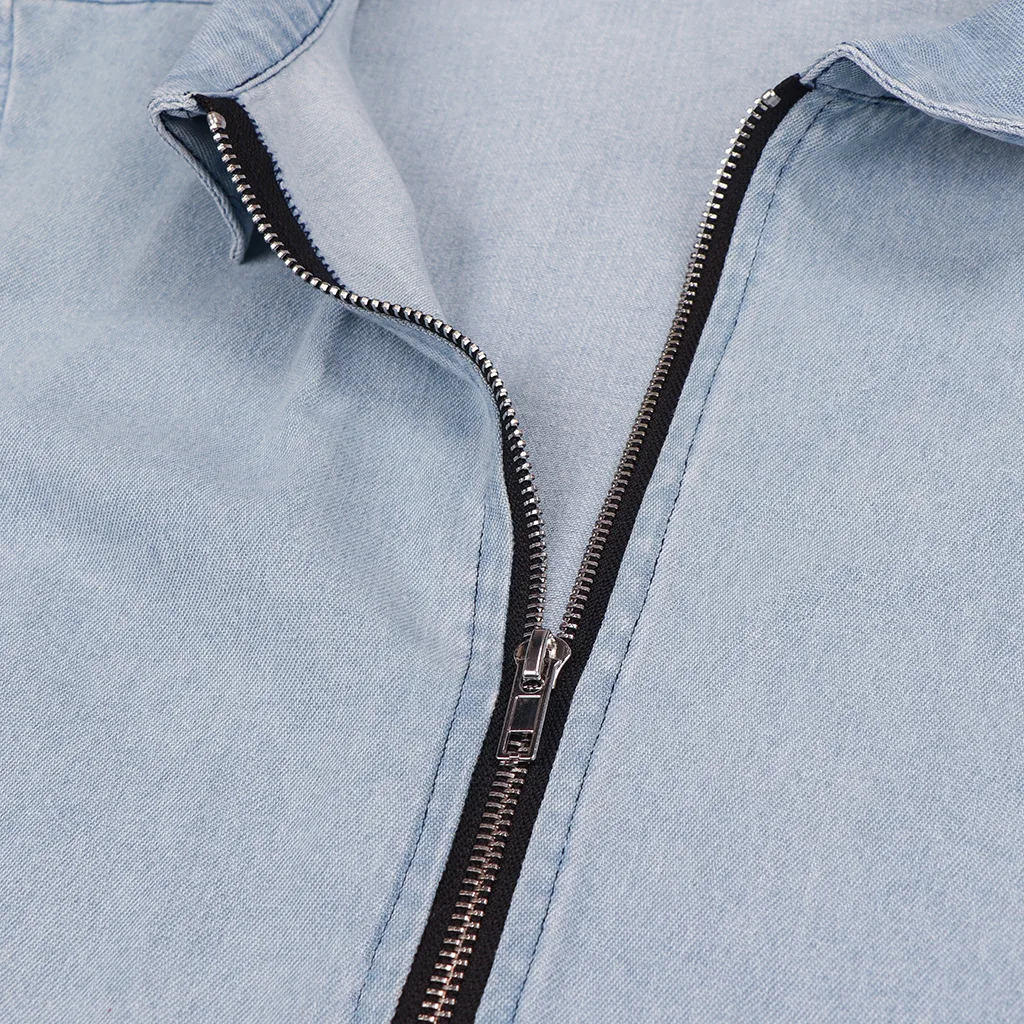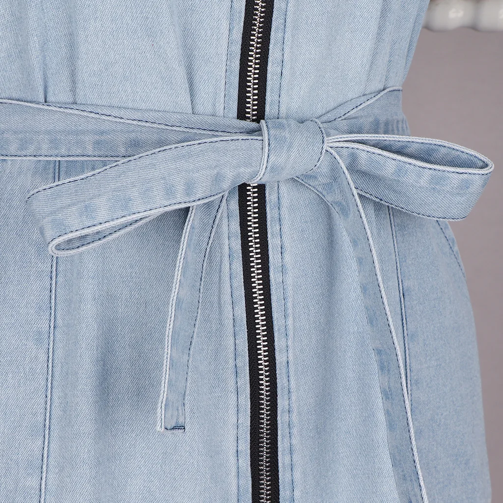 Sommerkjole i jeansstoff med casual livrem, lommer, korte ermer og glidelås - kvinne kjole til fest eller som swingkjole med korte ermer