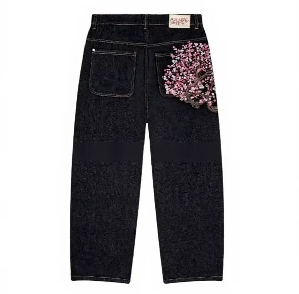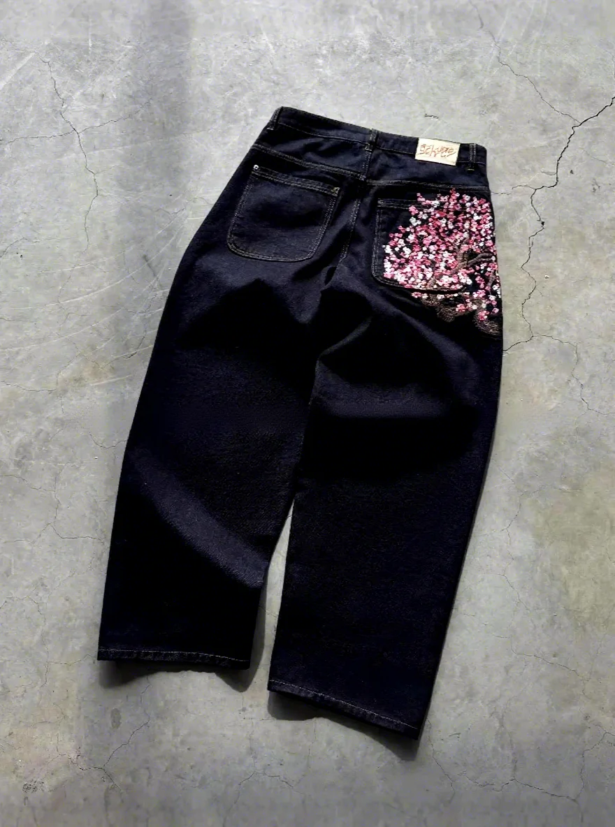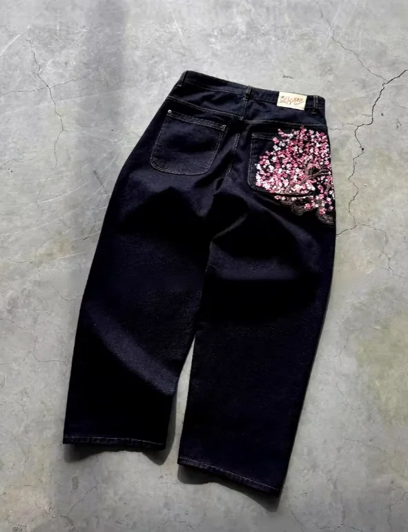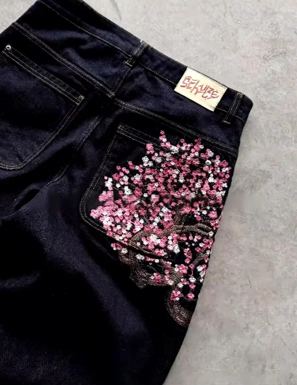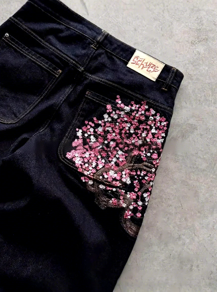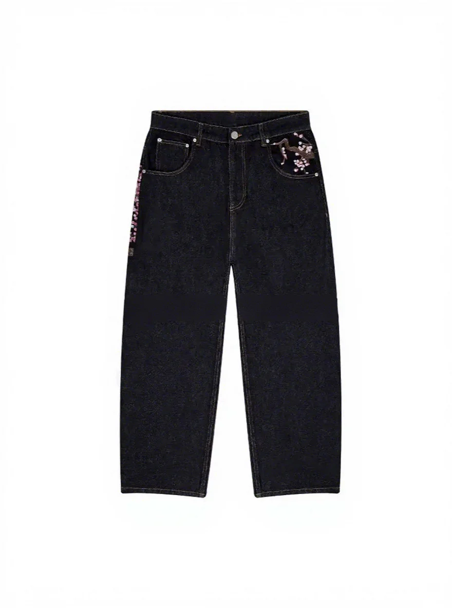 American Retro Embroidery Personality Street Trend Straight-leg Casual Versatile Dark Mid Waist Jeans