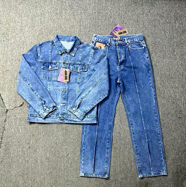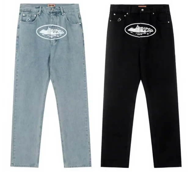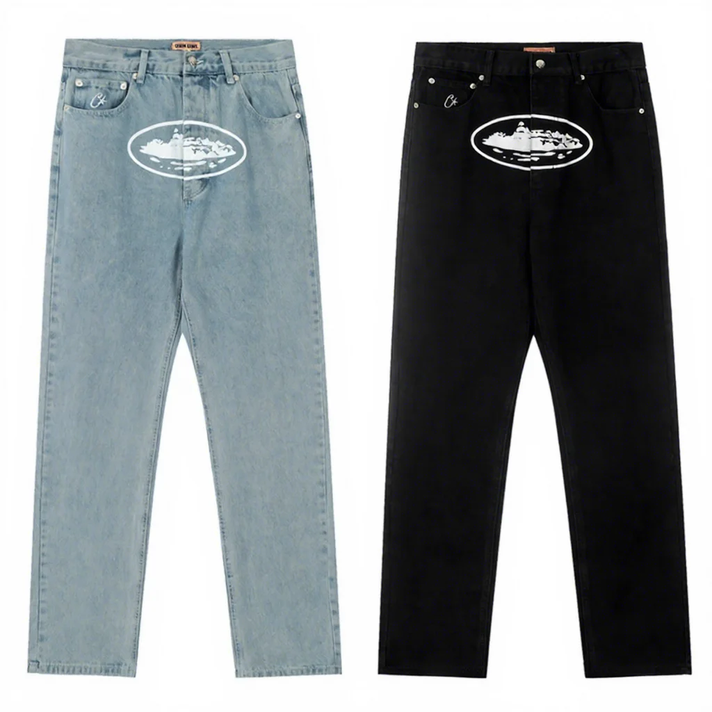 American Style Corteiz Classic Alcatraz Print Denim Casual High Street Jeans Men's Trendy Versatile Vintage Boot Cut Pants