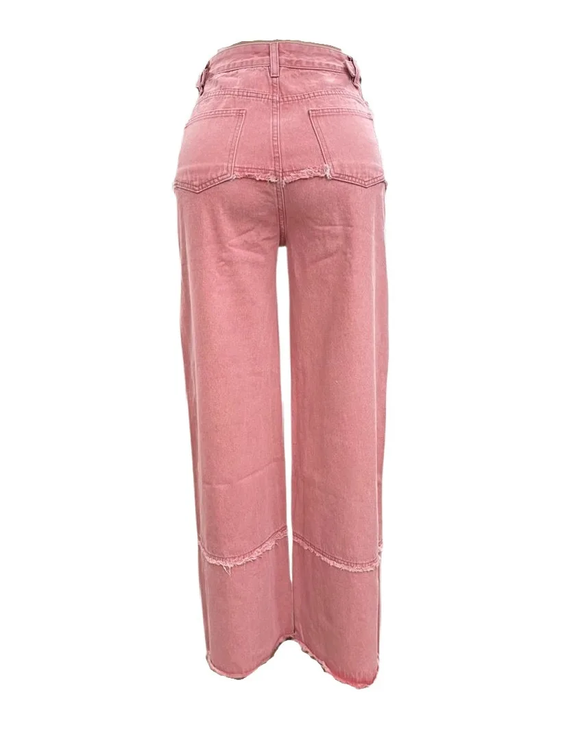 American Style High Street Fashionable Ripped Personality Solid Color Vintage Boot Cut Pants