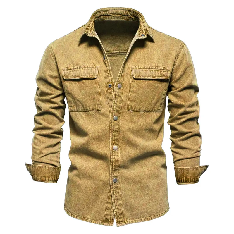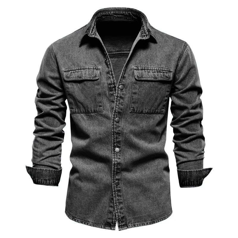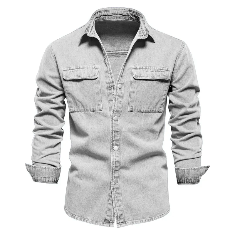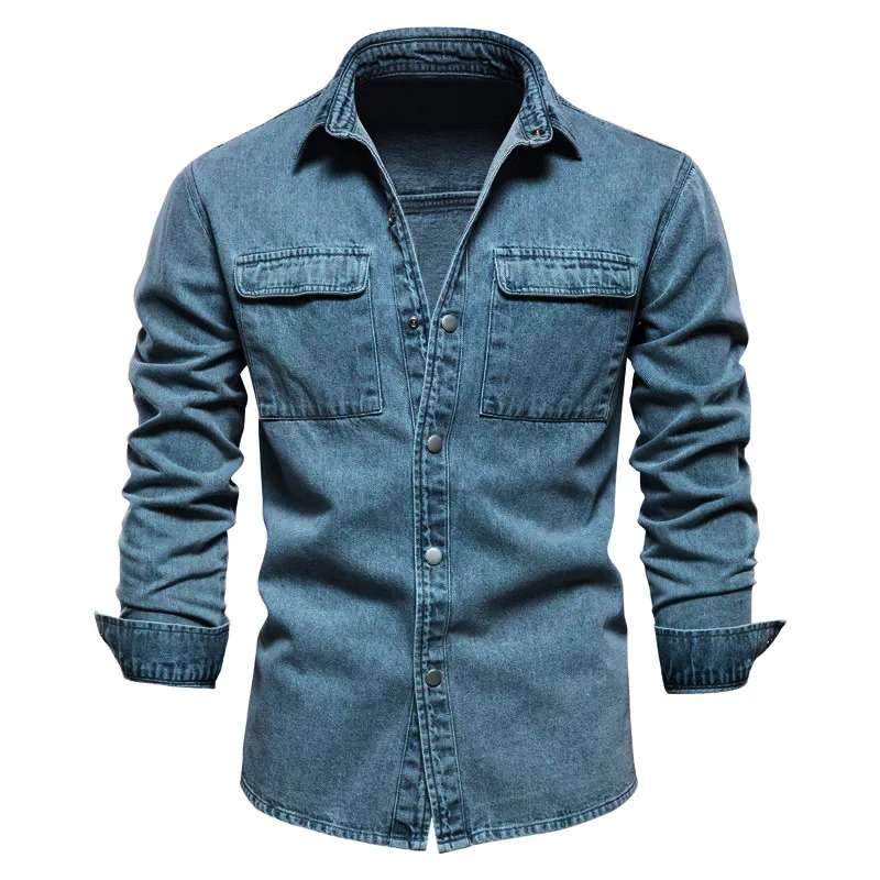 Autumn 100% Cotton Denim Shirts Men Casual Solid Color Long Sleeve Shirt for Men Spring High Quality Jeans Male Shirt
