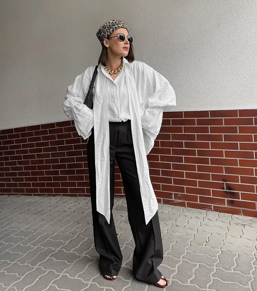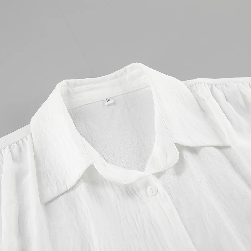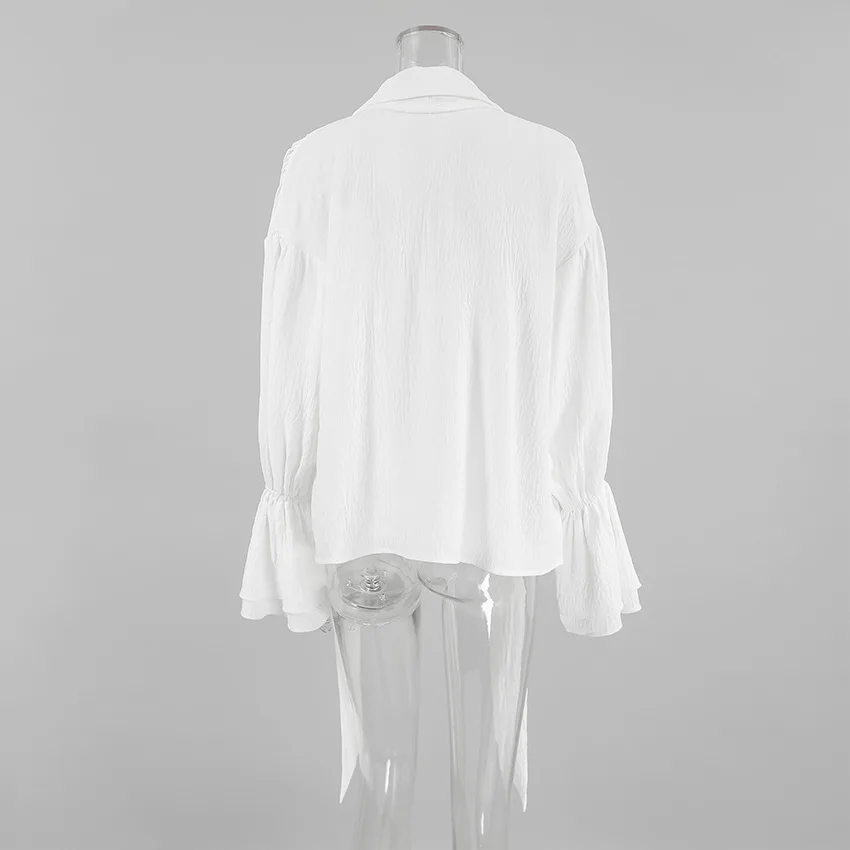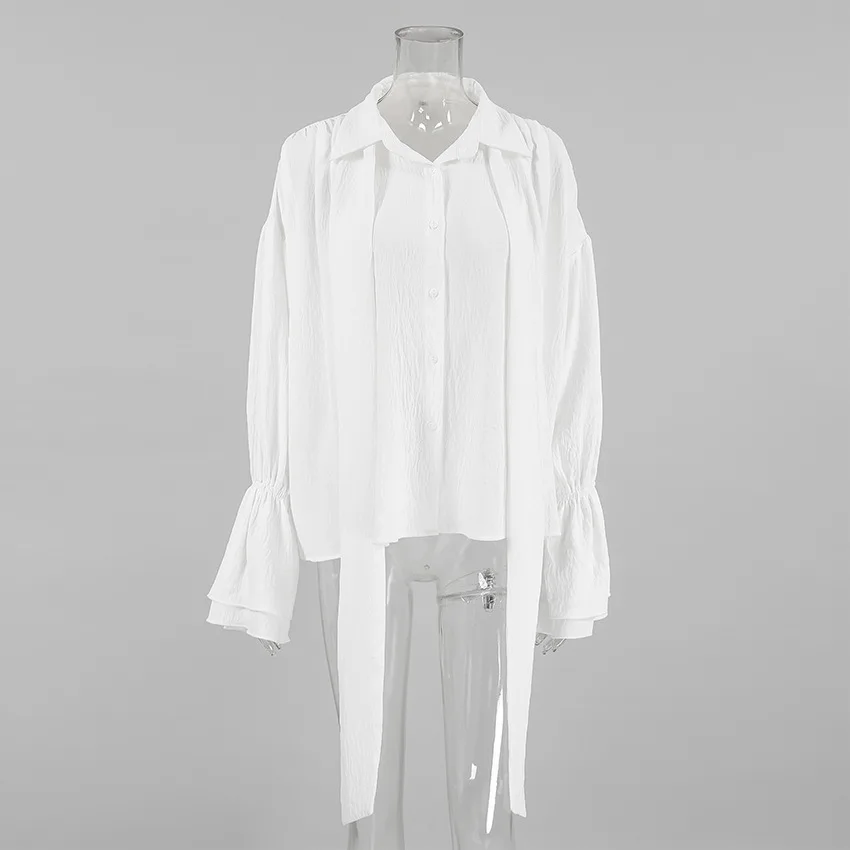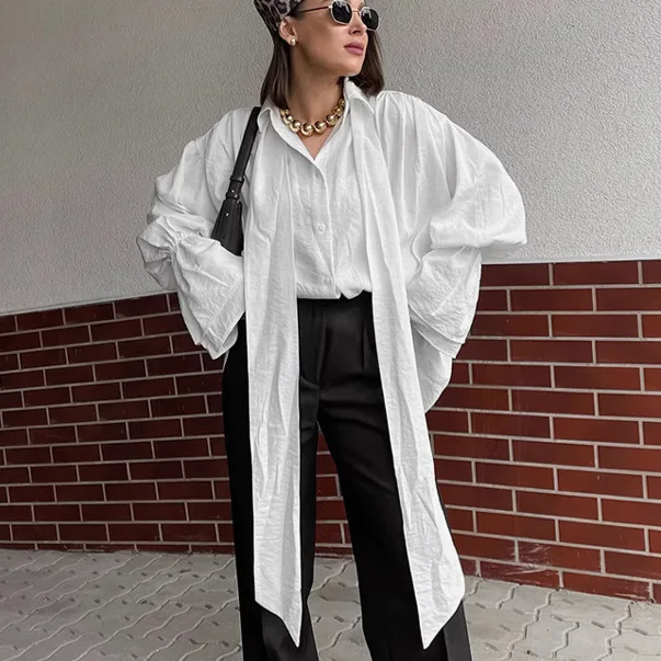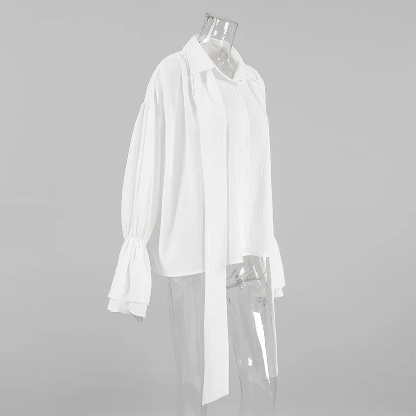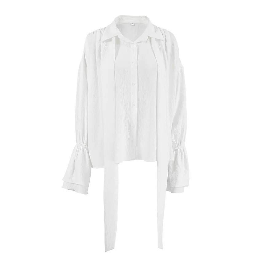 Autumn and Winter New Design Commuter Loose Ribbon Shirt French/Cute Style White Flared Sleeve Broadcloth Top for Women