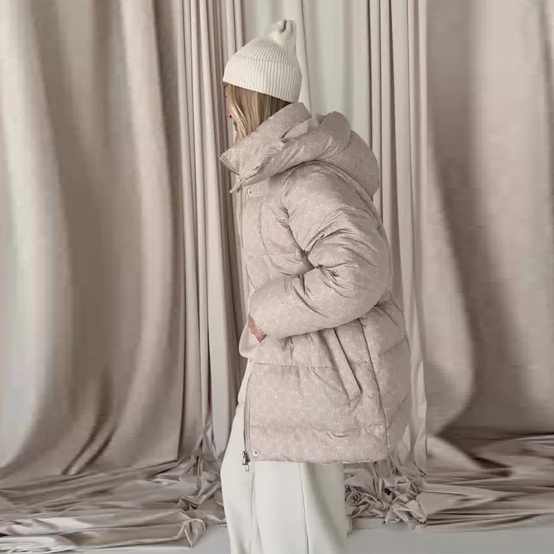 Autumn New European American Women's Printed Wool/Silk Hooded Mandarin Collar Blazer Jacket