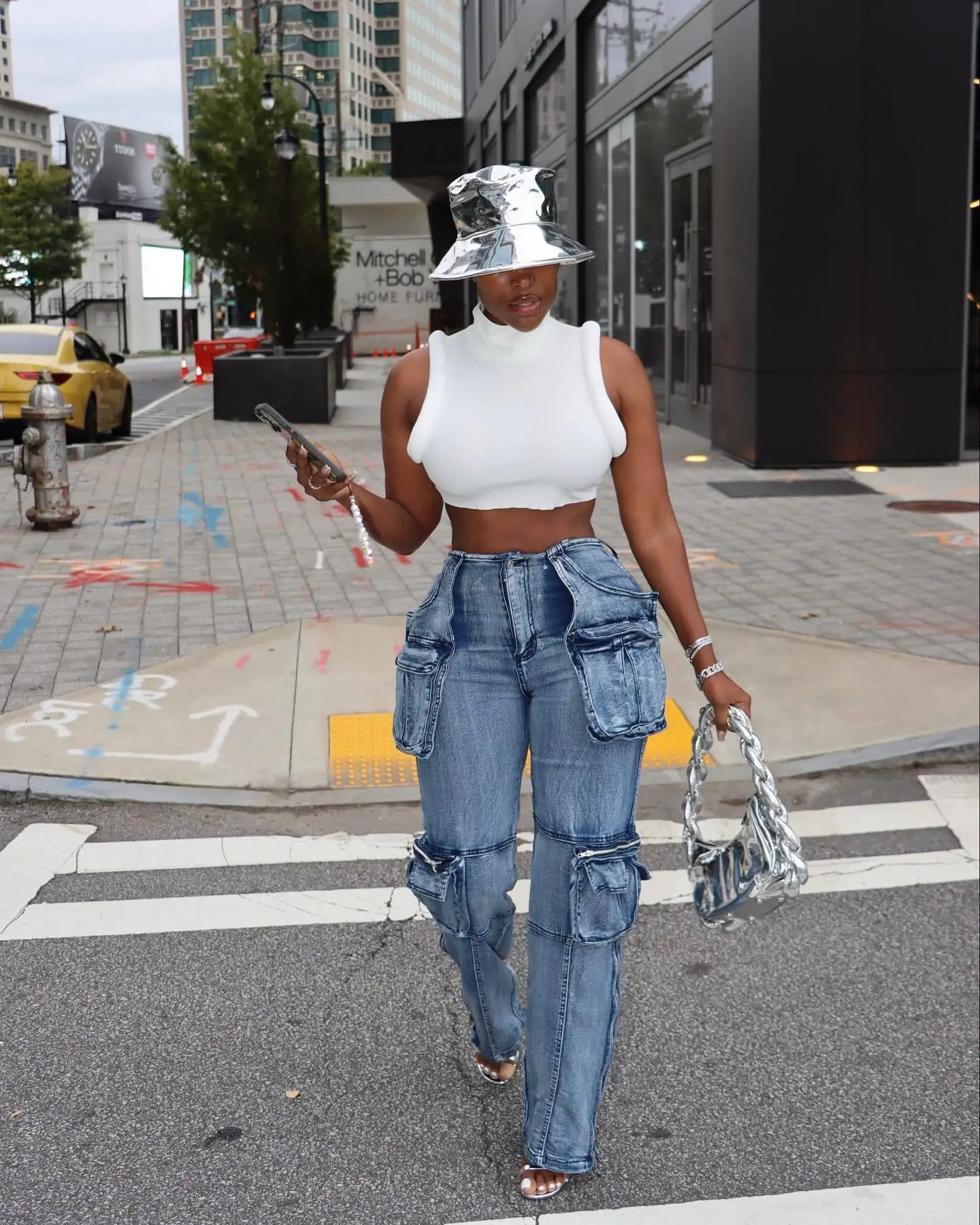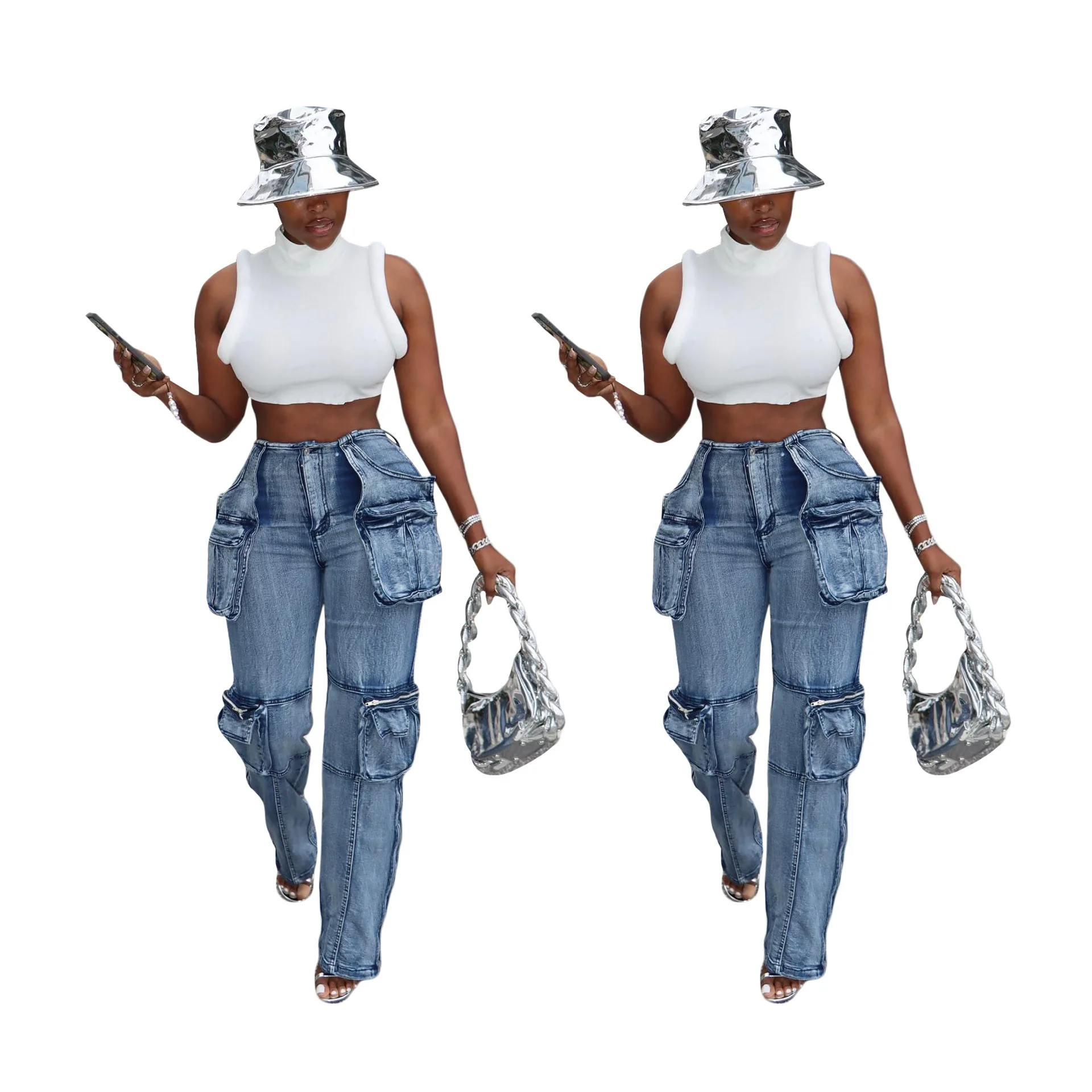 Cargo Jeans Women Big Pocket Loose Female Denim Pants 2024 Spring Winter Casual Straight Trousers with Multi Pockets