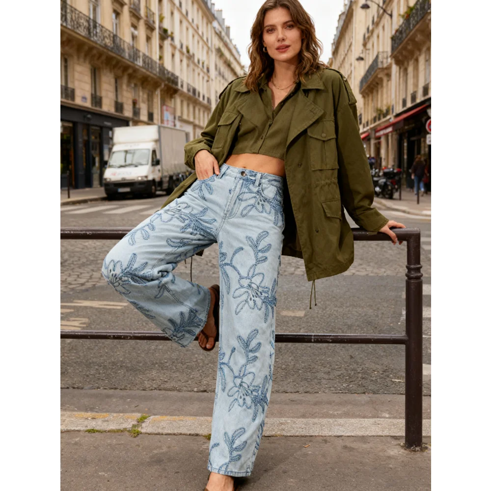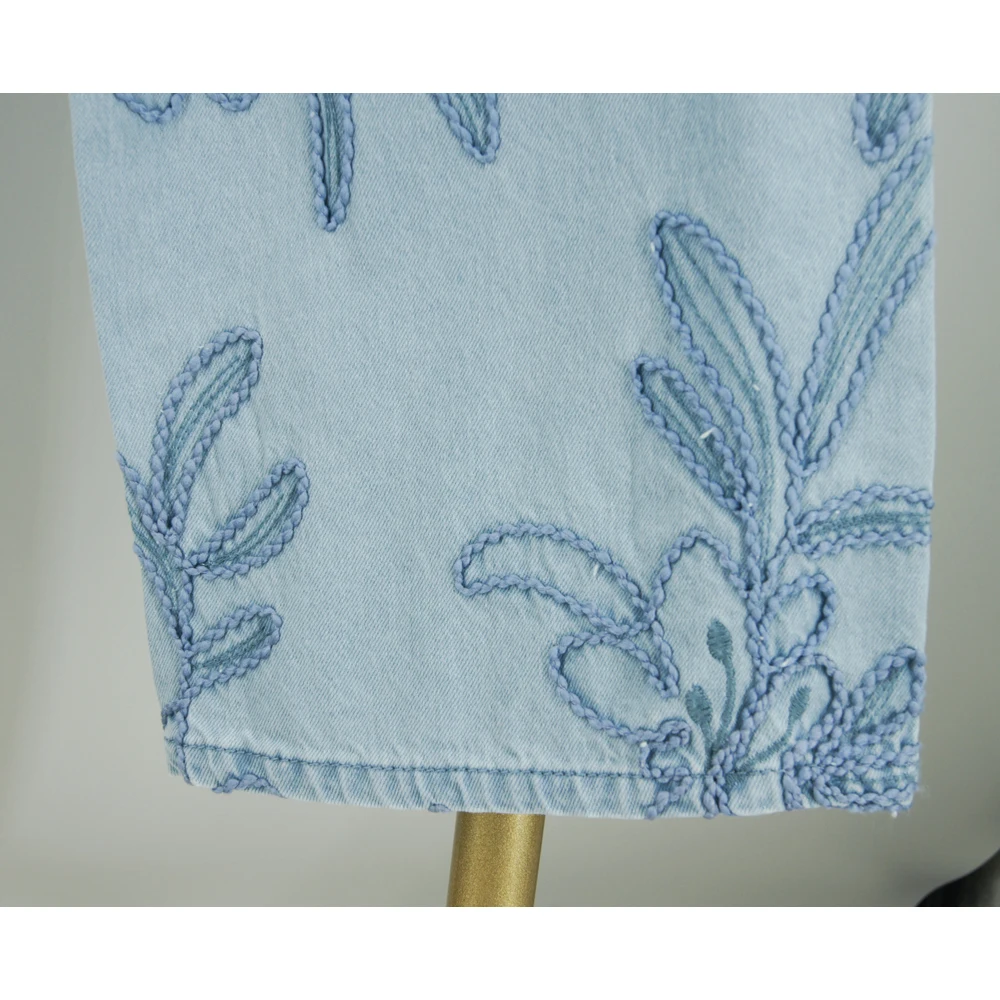 Custom Denim Pants Wide Leg Hip Hop Style Fade Breathable Jeans Straight Embroidered Jeans