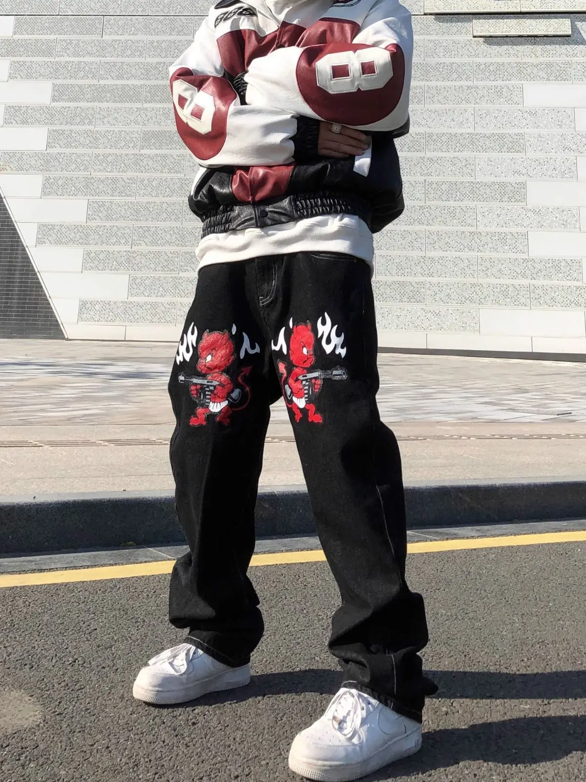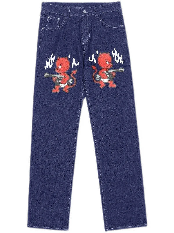 Custom Hip Hop Punk Digital Transfer Printing Denim Trousers Relaxed Fit Baggy Jeans Men Washing Men's Jeans