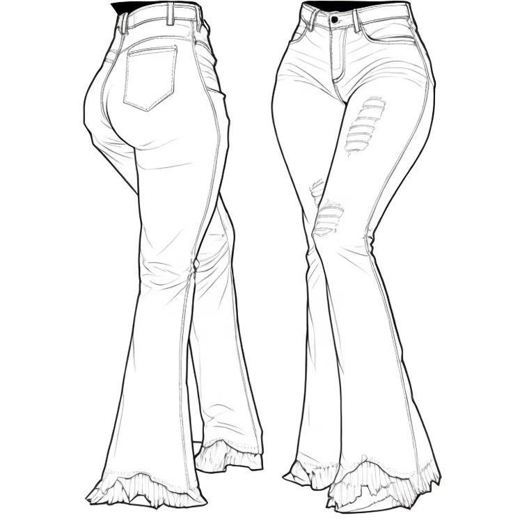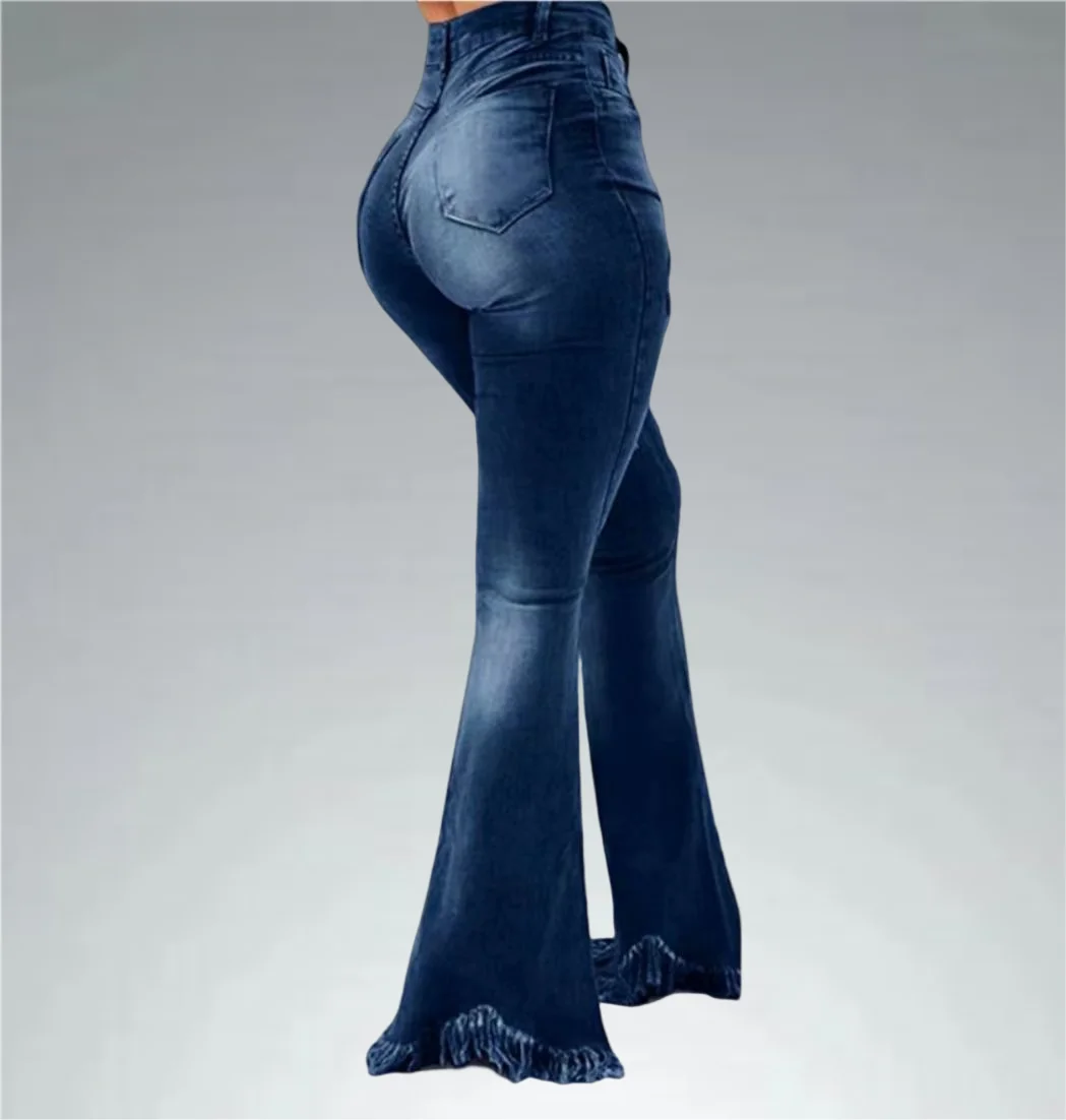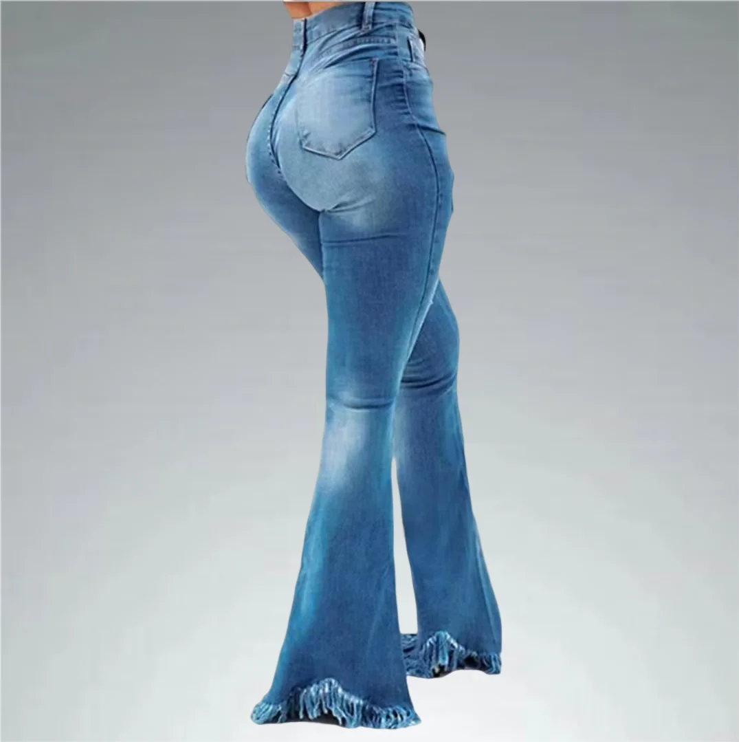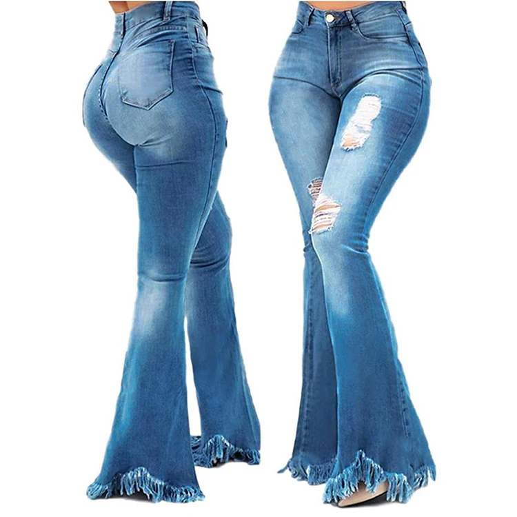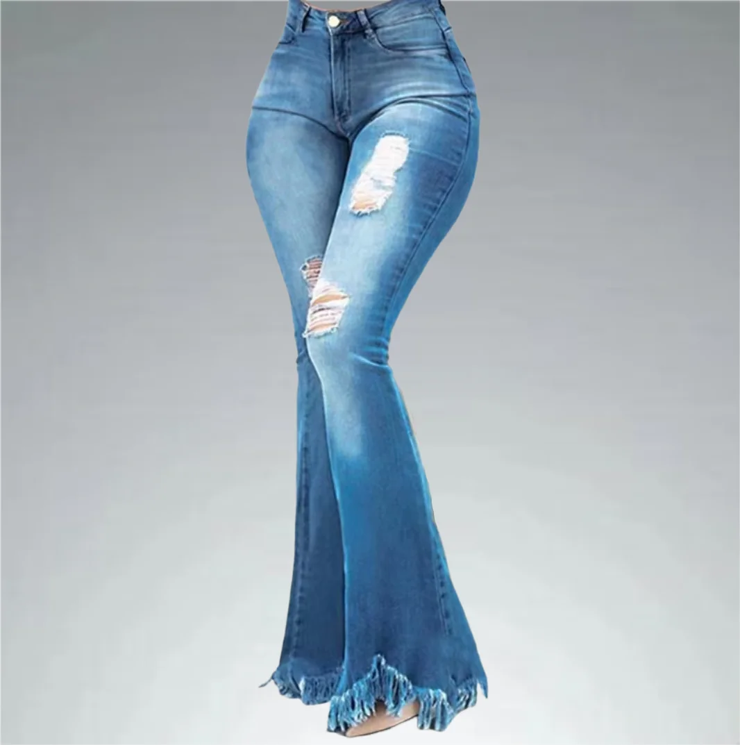 2023 New Trendy Plus Size Ripped Jeans Torn Washed Denim Stretch Slim Fit Flared Trousers Women High Waist Love&Roses Jeans