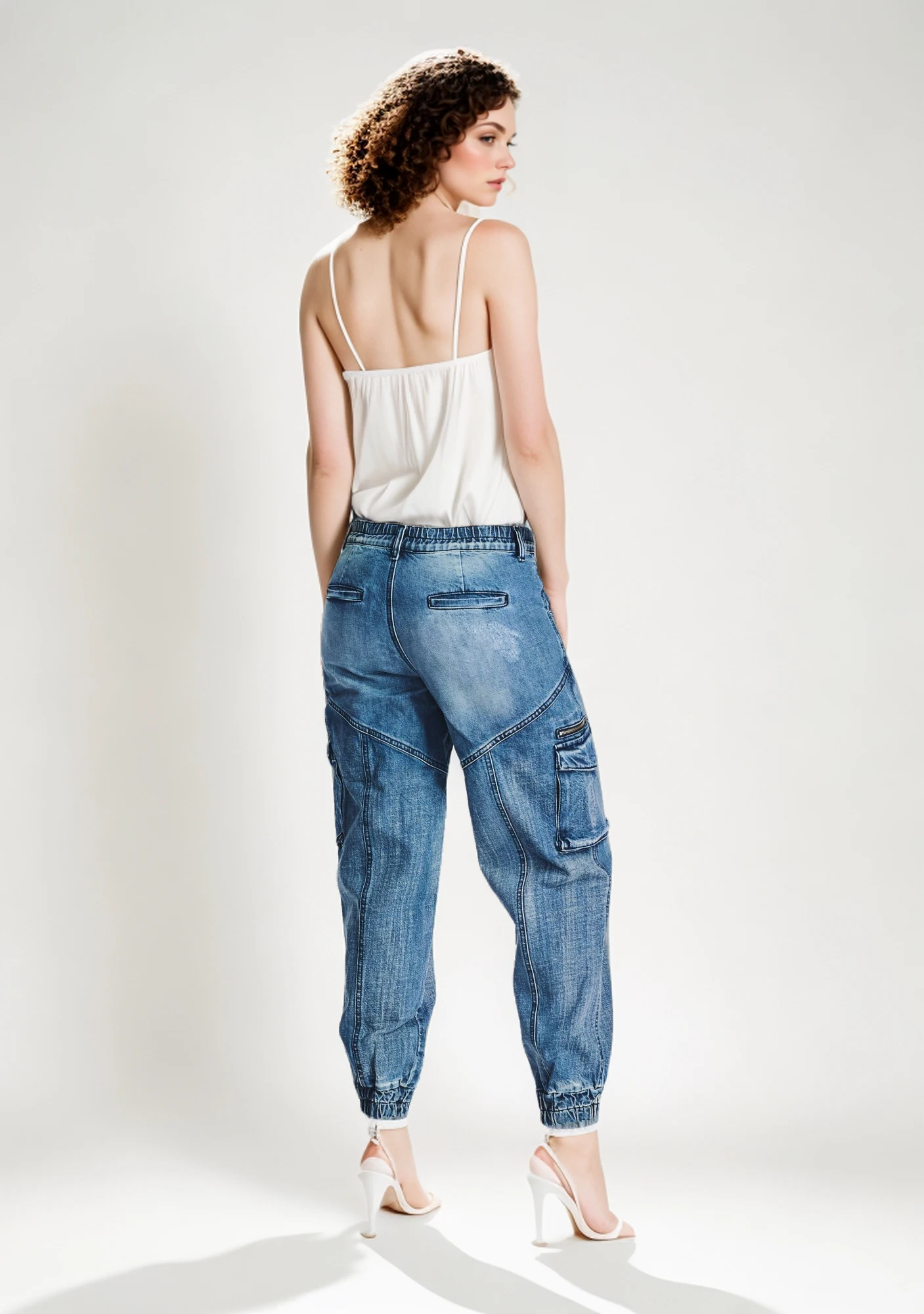 Custom Wholesale Factory Direct Sales Women's New Casual Fashion Washing Process Overalls Elastic Foot Pants Jeans