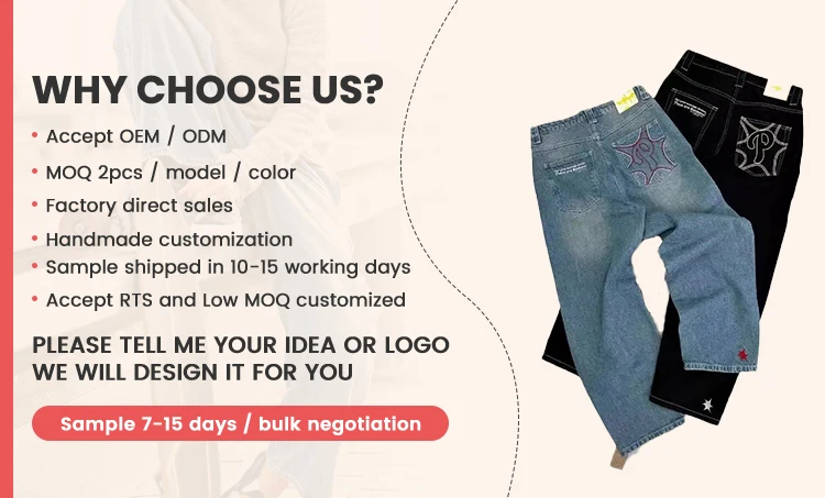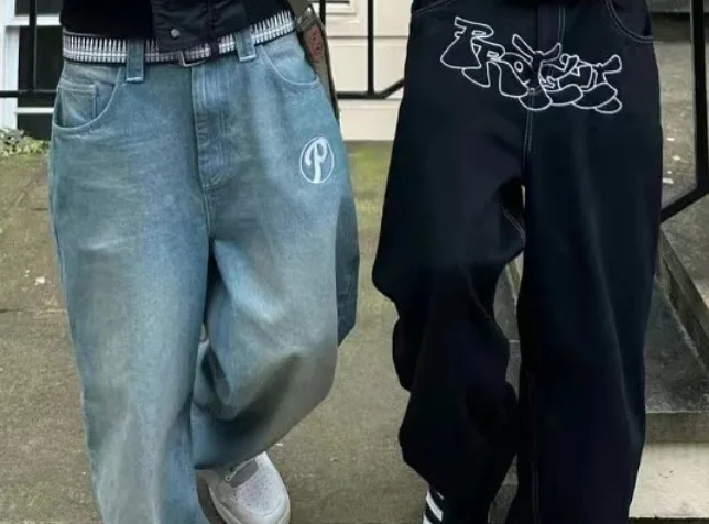 Custom Y2k Men's Straight Jean Loose Baggy Street Retro Pants Printed Denim Jeans