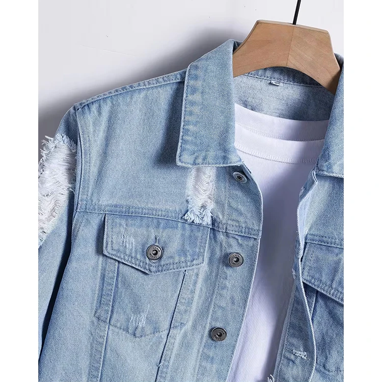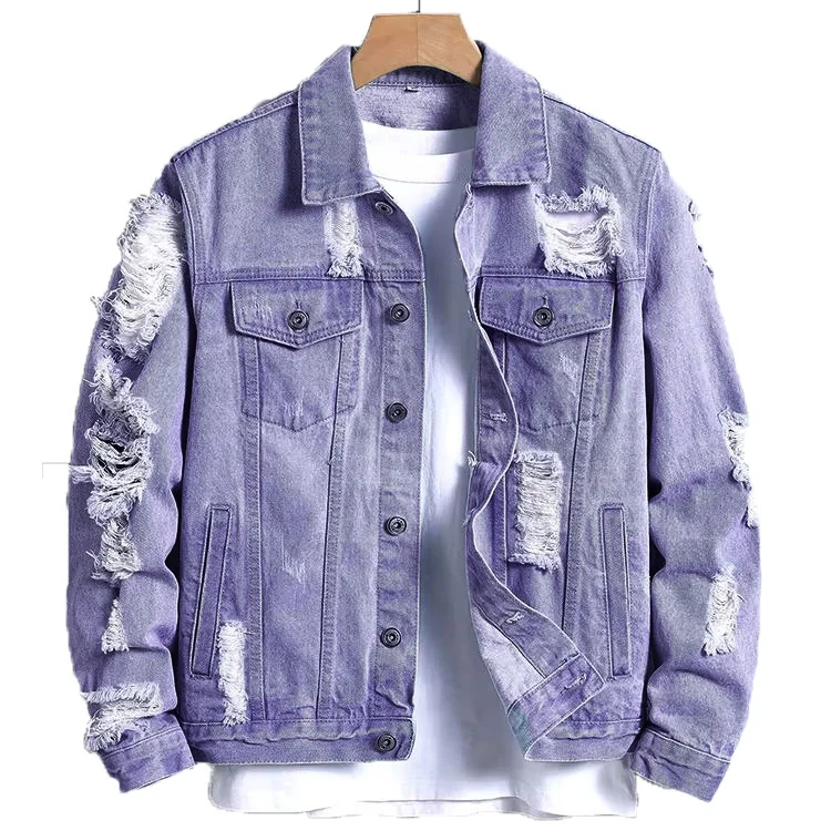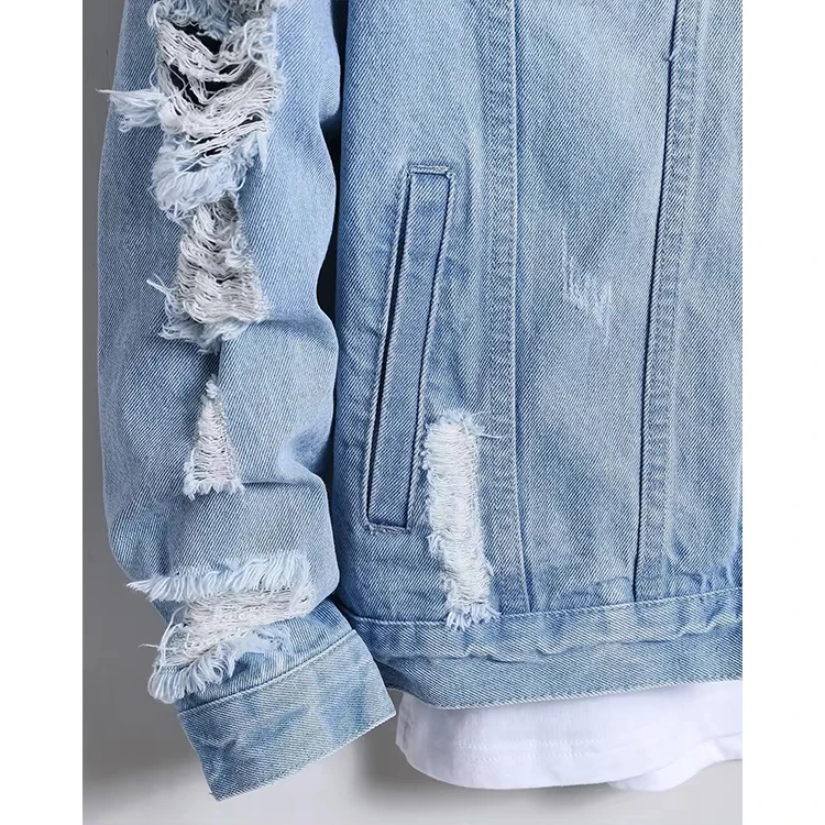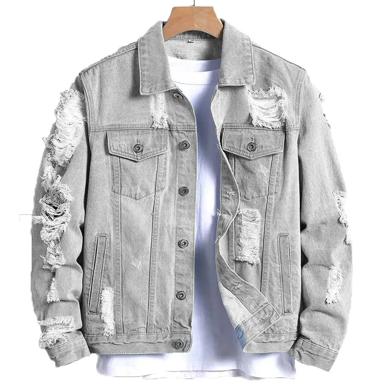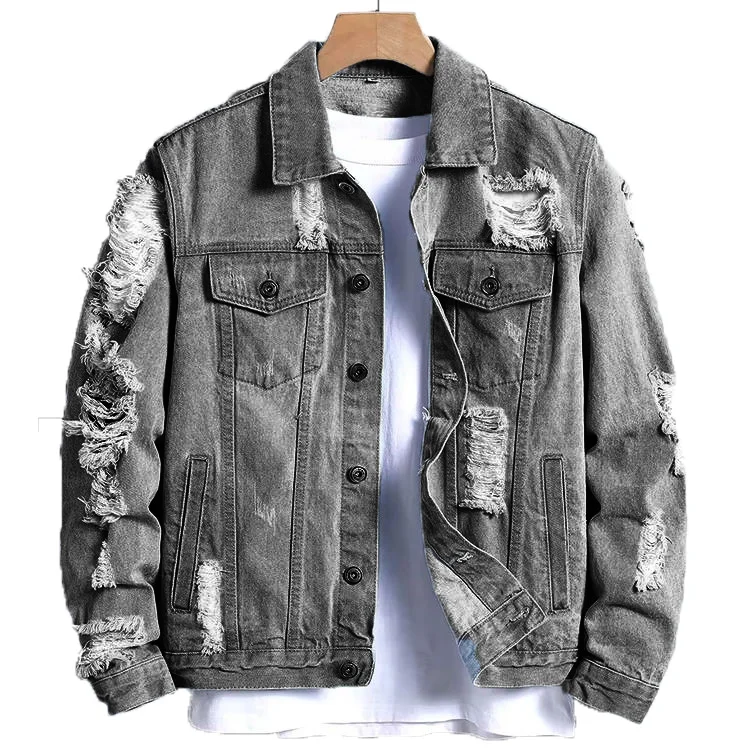 Customized Street Style Fashion Casual Ripped Denim Jacket Men's Denim Jacket