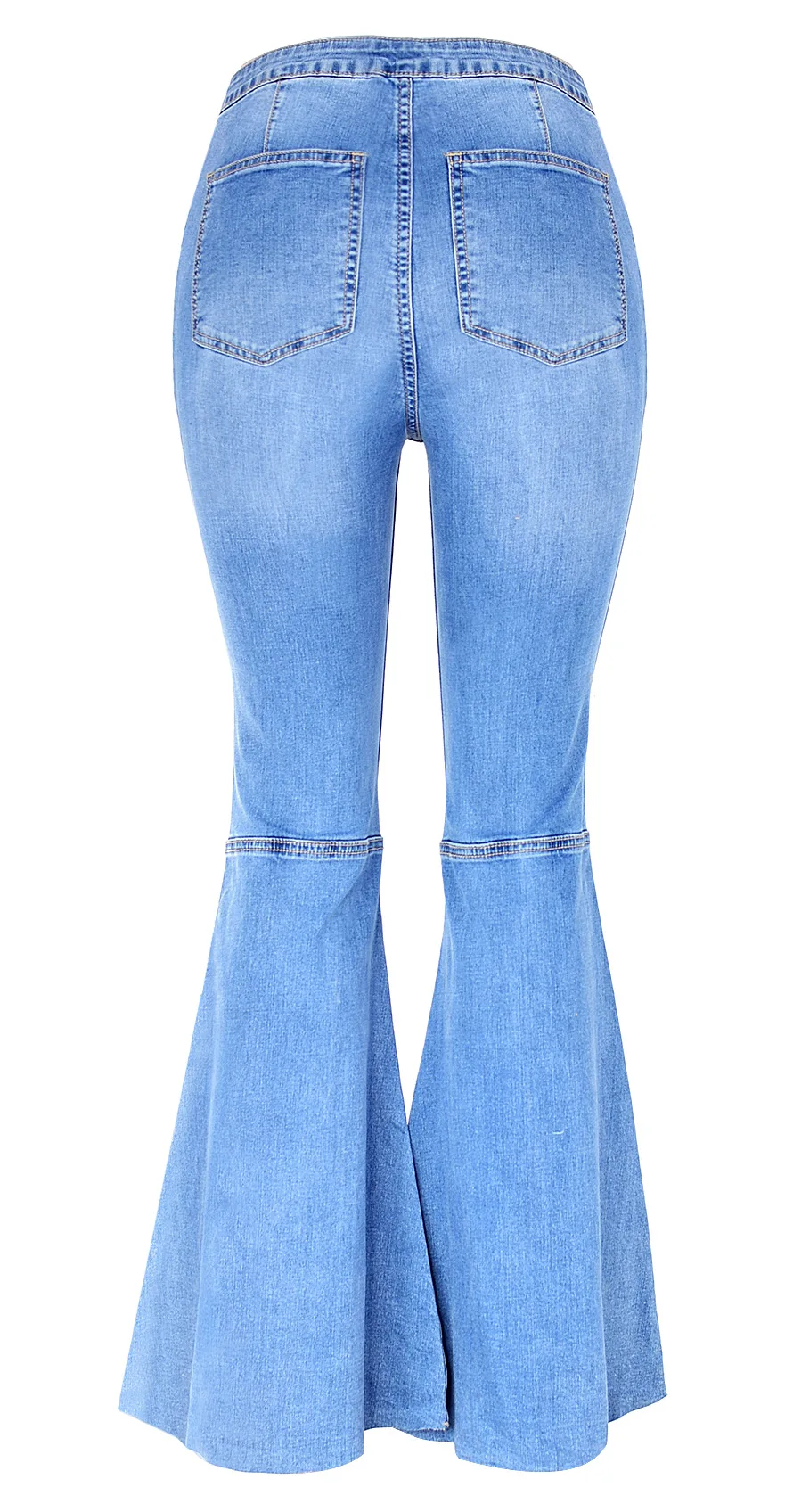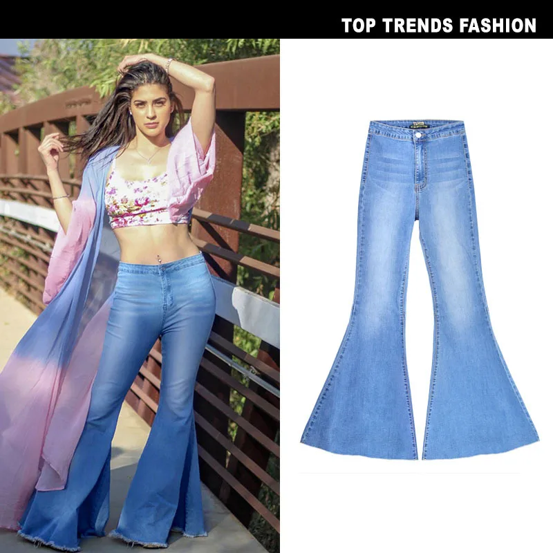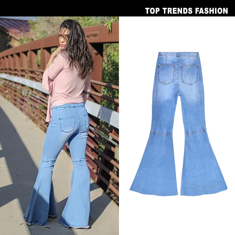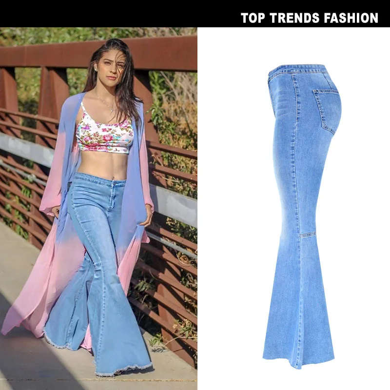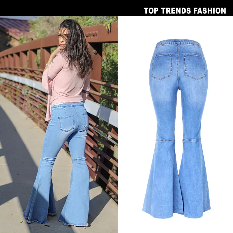 European and American Women's Retro High Waist Stretch Washed Slimming Wide Leg Flared Denim Jeans Spring Quick Dry