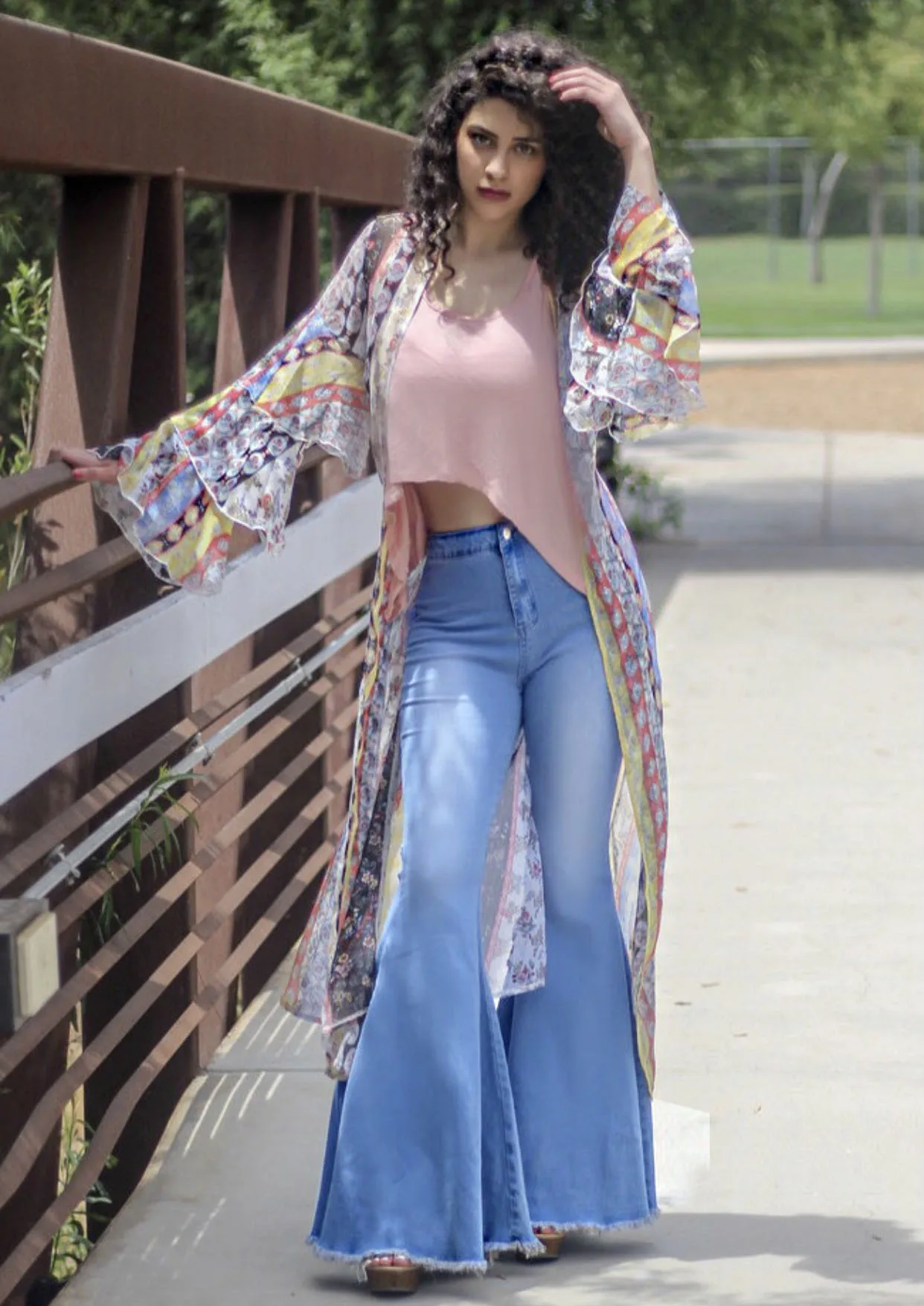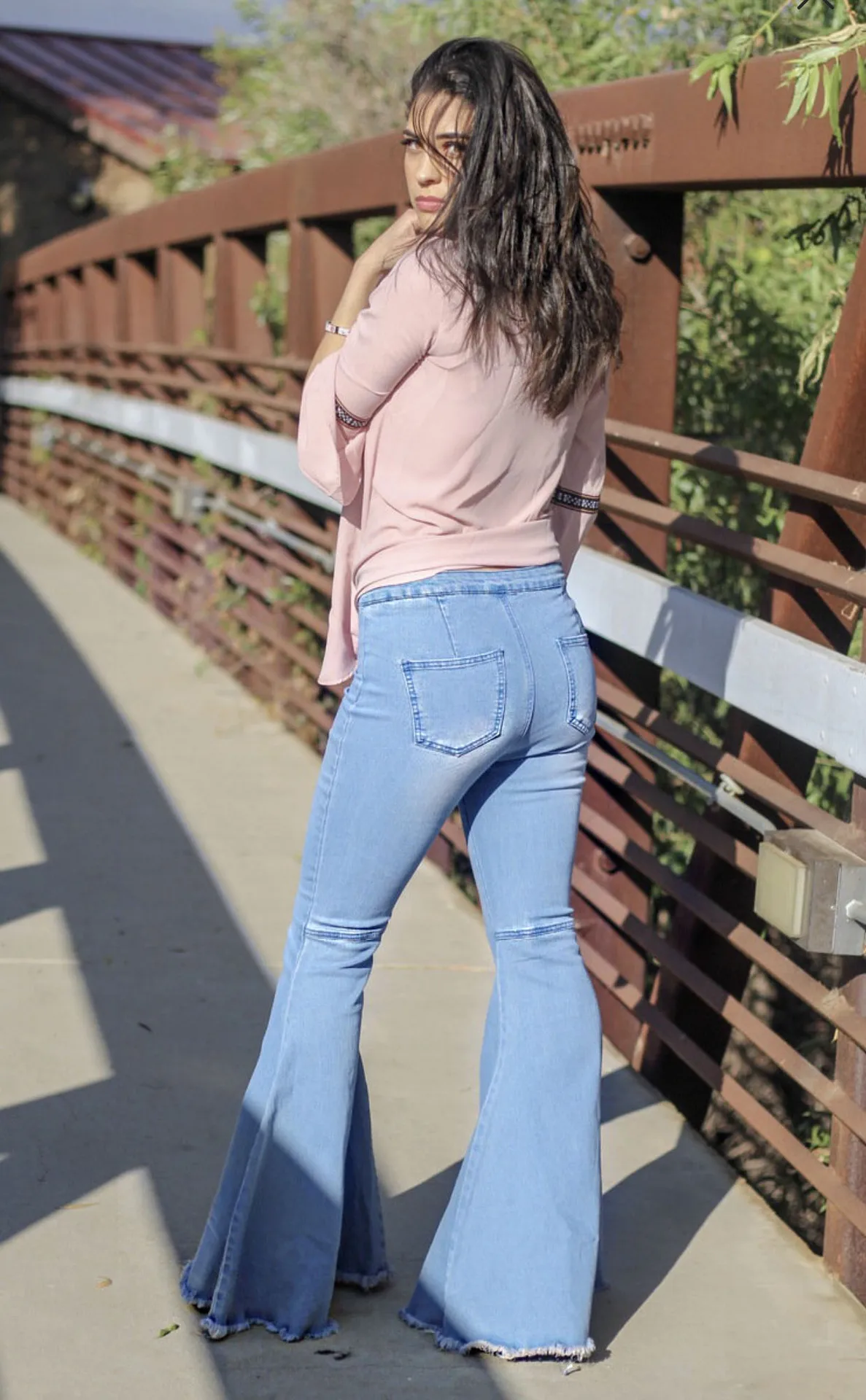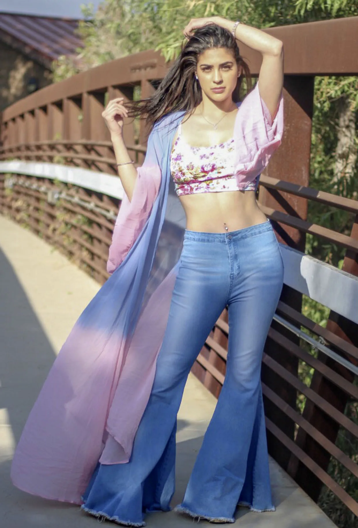 European and American Women's Retro High Waist Stretch Washed Slimming Wide Leg Flared Denim Jeans Spring Quick Dry