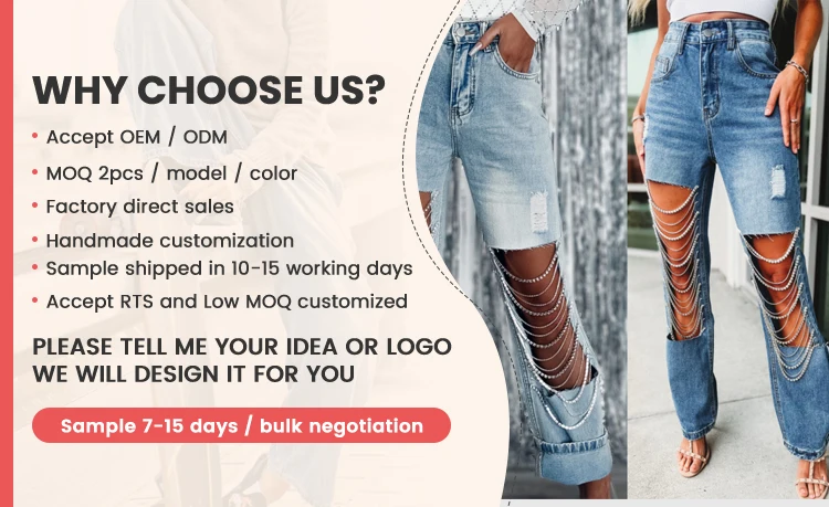 Fall Straight Jeans Women Holes Diamond Rhinestones Chains High Waist Fashion Streetwear Tassel Women Denim Pants Jeans