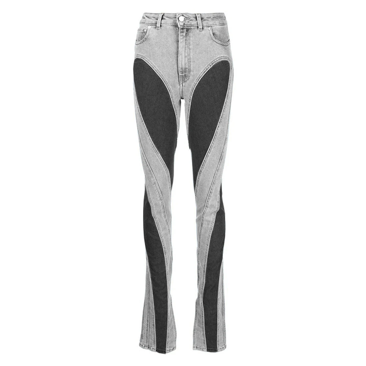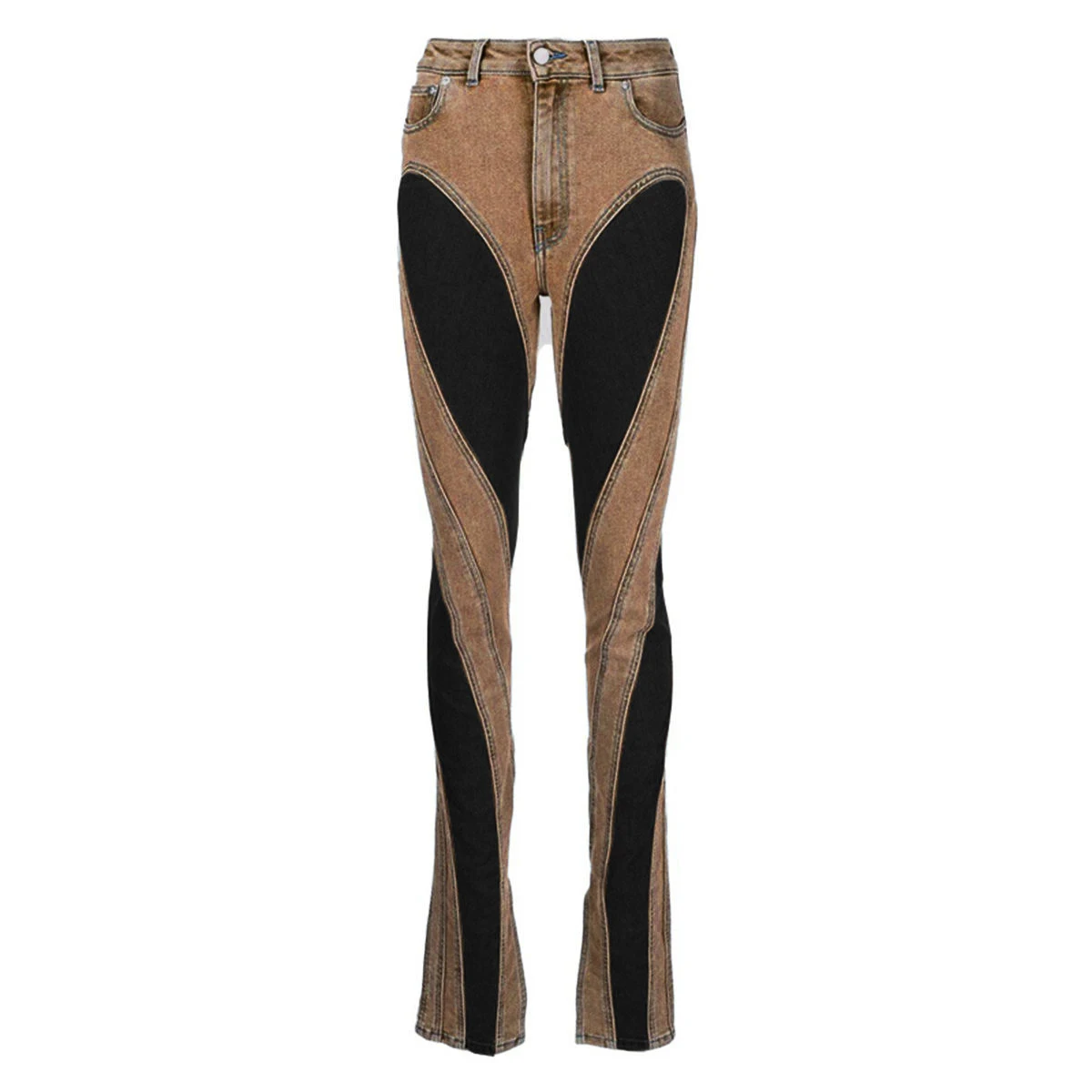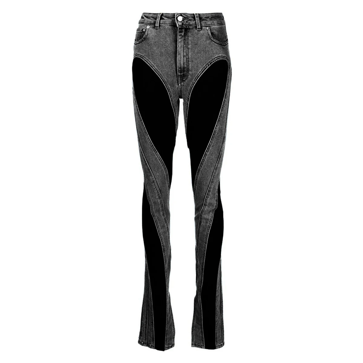 Fashion Contrast Color Patchwork Jeans Women Straight Slim Women Jeans New Arrival Casual Clothing