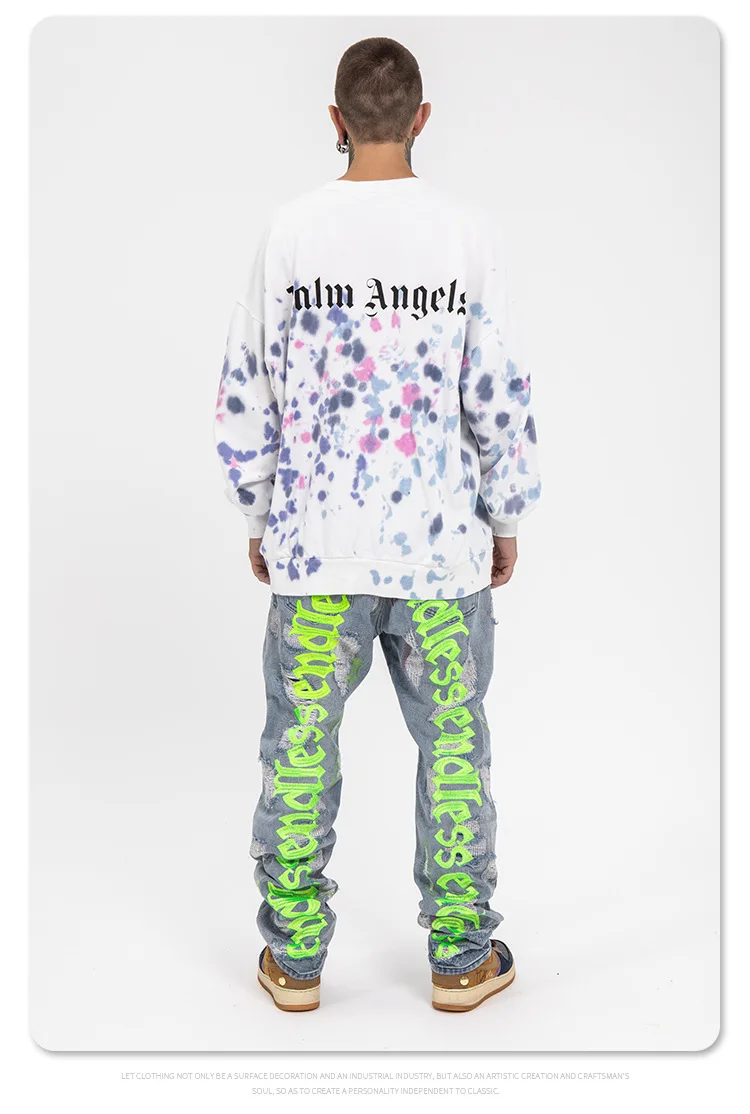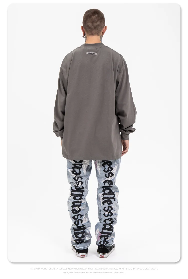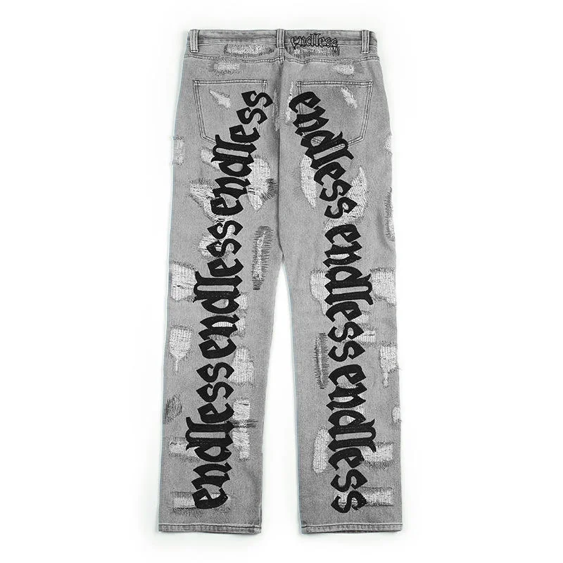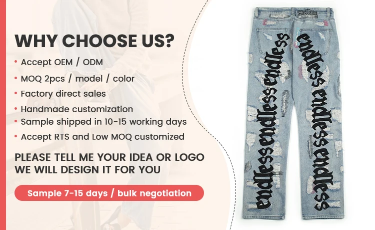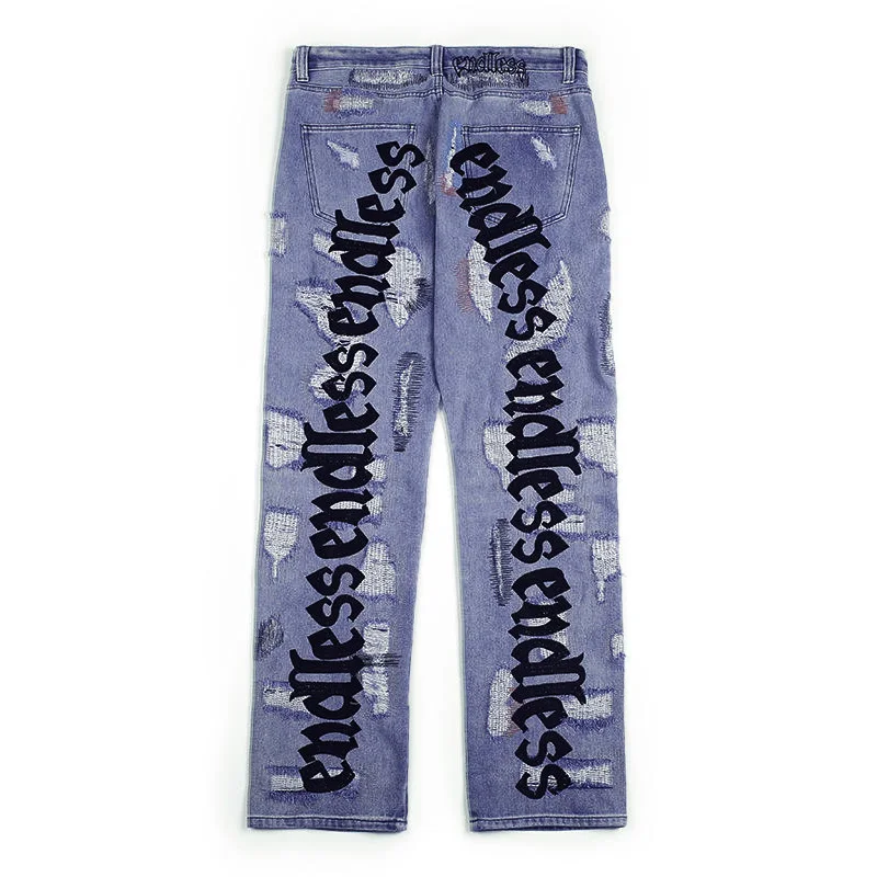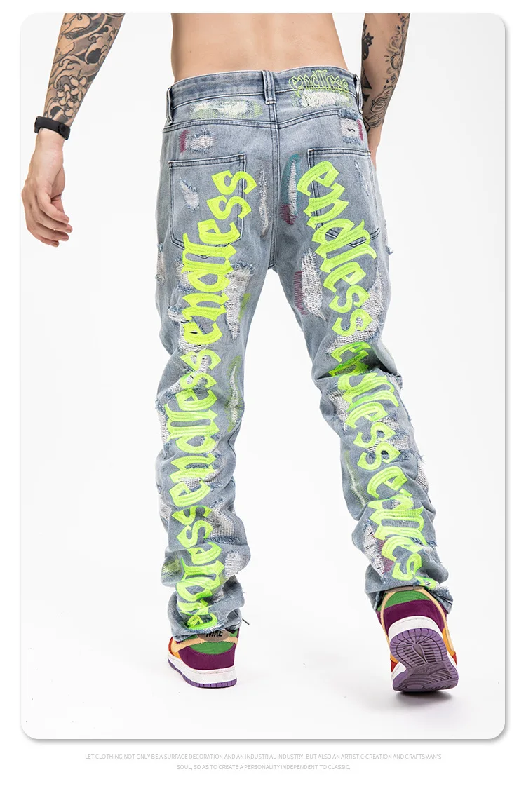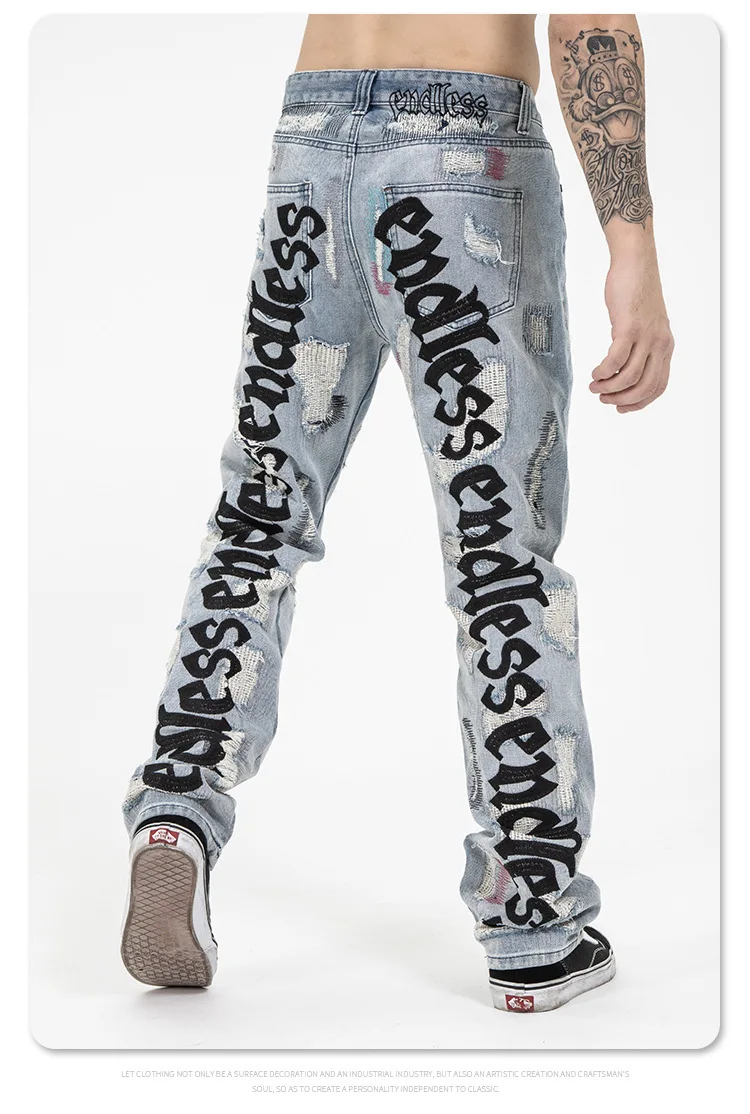 Fashion Embroidery LOGO Custom Denim Ripped High Street Custom Men's Jeans