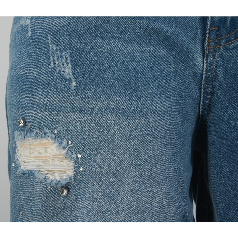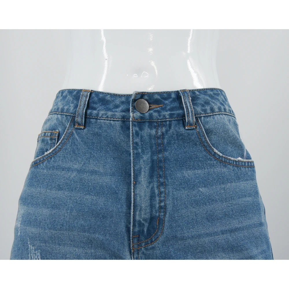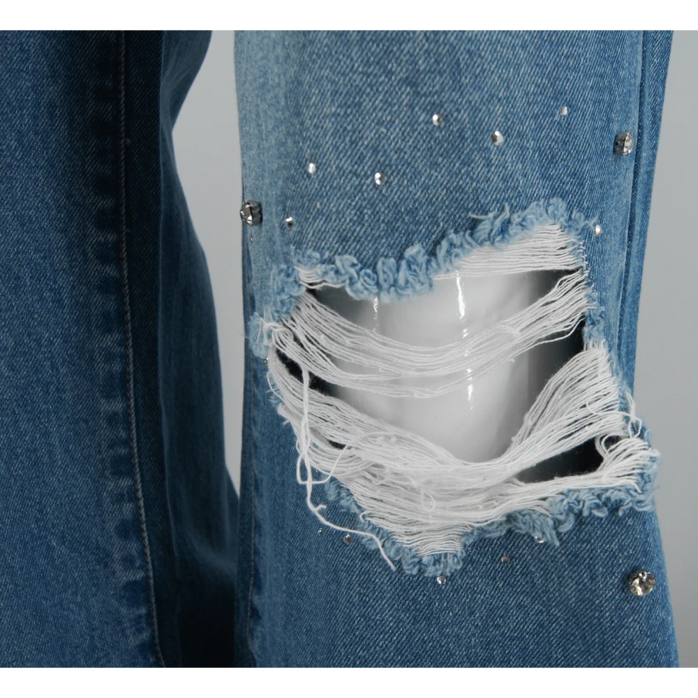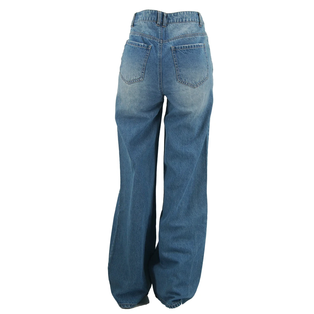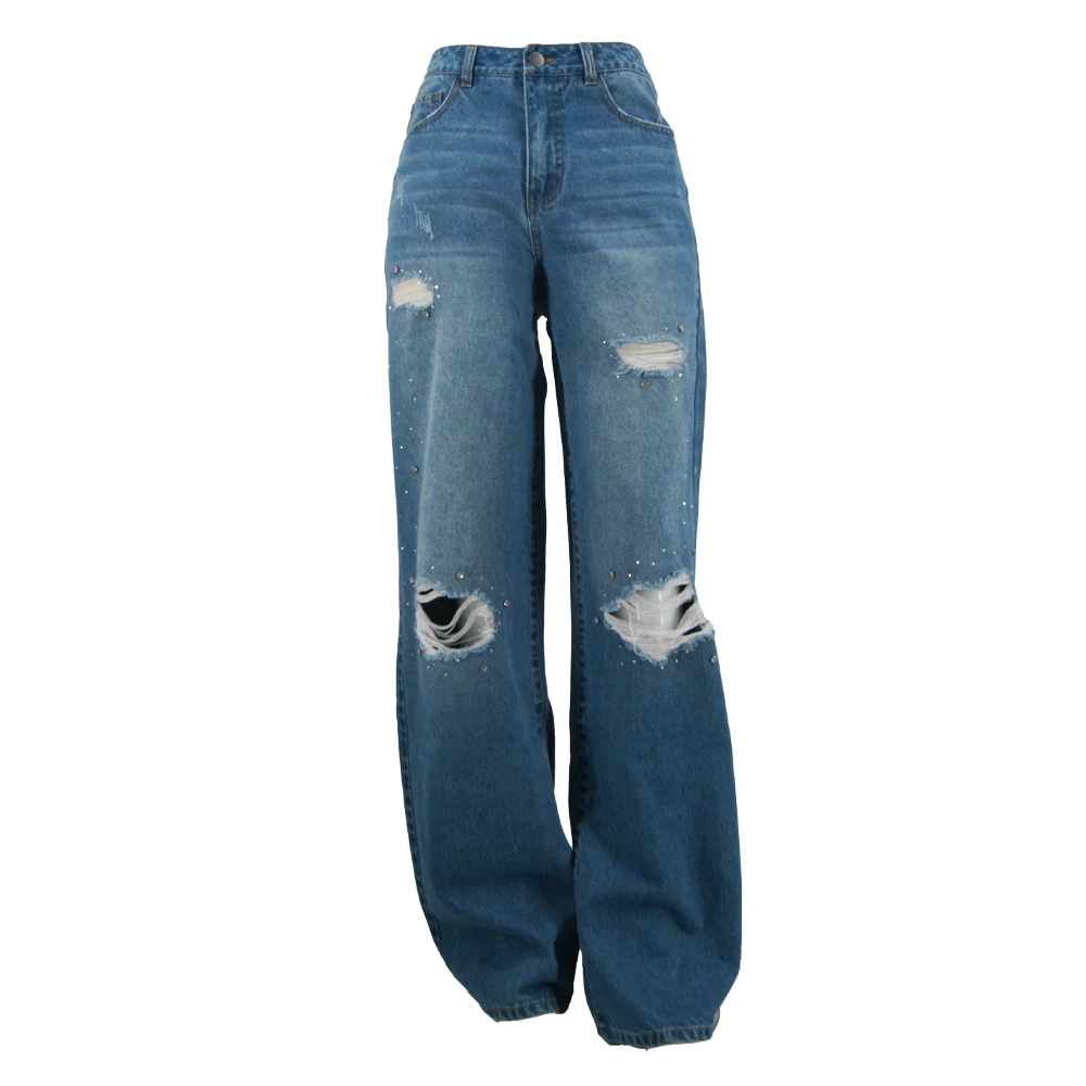 Glamorous Distressed Women's Jeans Trendy High Waist Wide Leg Denim Pants