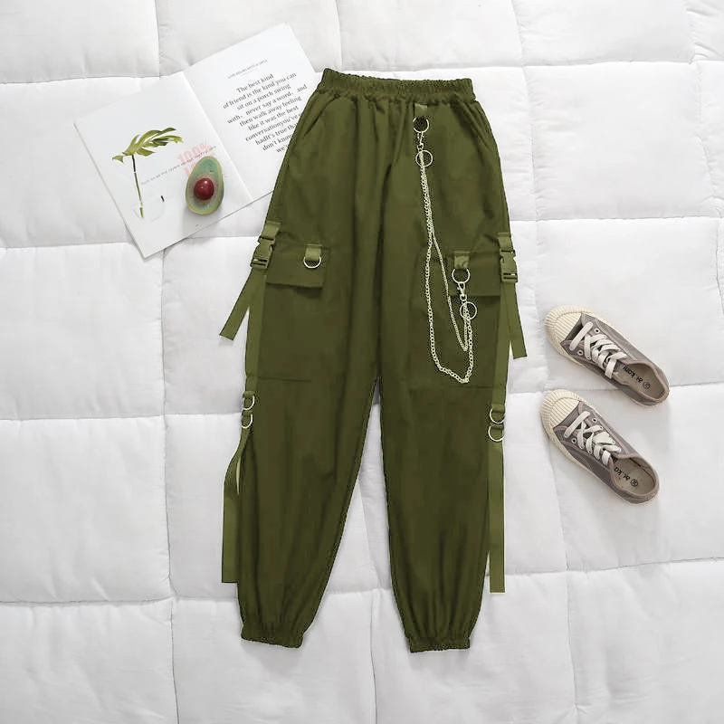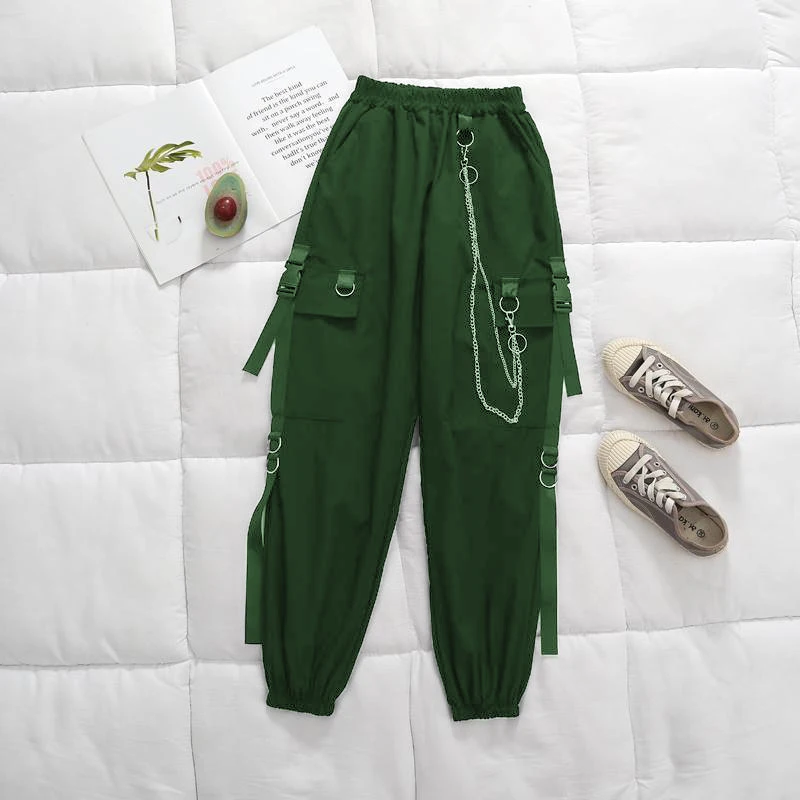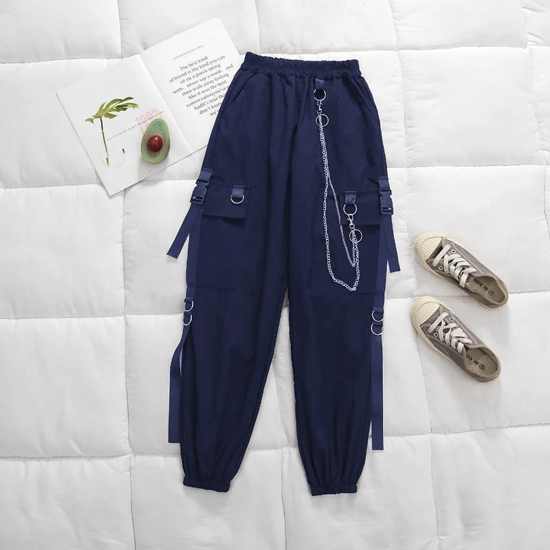 Gothic Women Black Cargo Pants Harajuku Punk Chain Trousers Female Hip Hop Mall Goth Streetwear Techwear Egirl Grunge