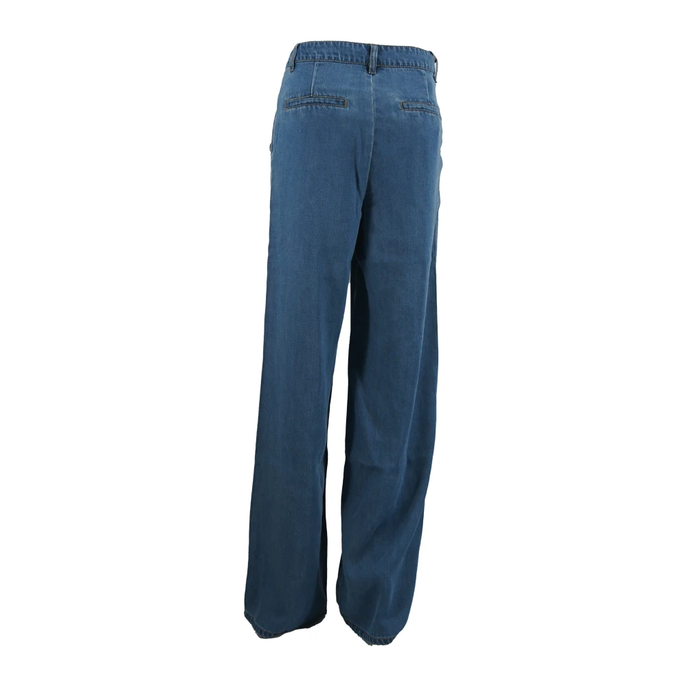 High-waist Casual Denim Trousers Featuring Trendy Pleated Flared Jeans