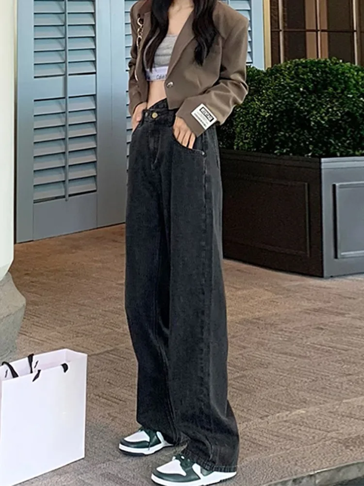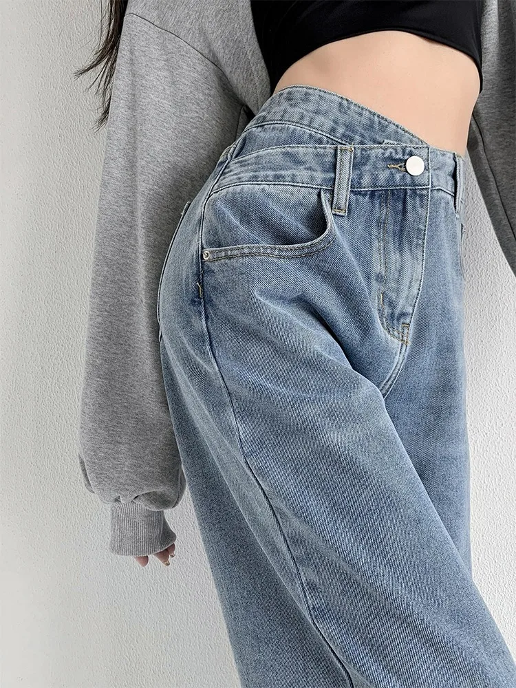 Good Quality Loose Straight Denim Jeans For Women's Versatility High Waist Skinny Pants Summer