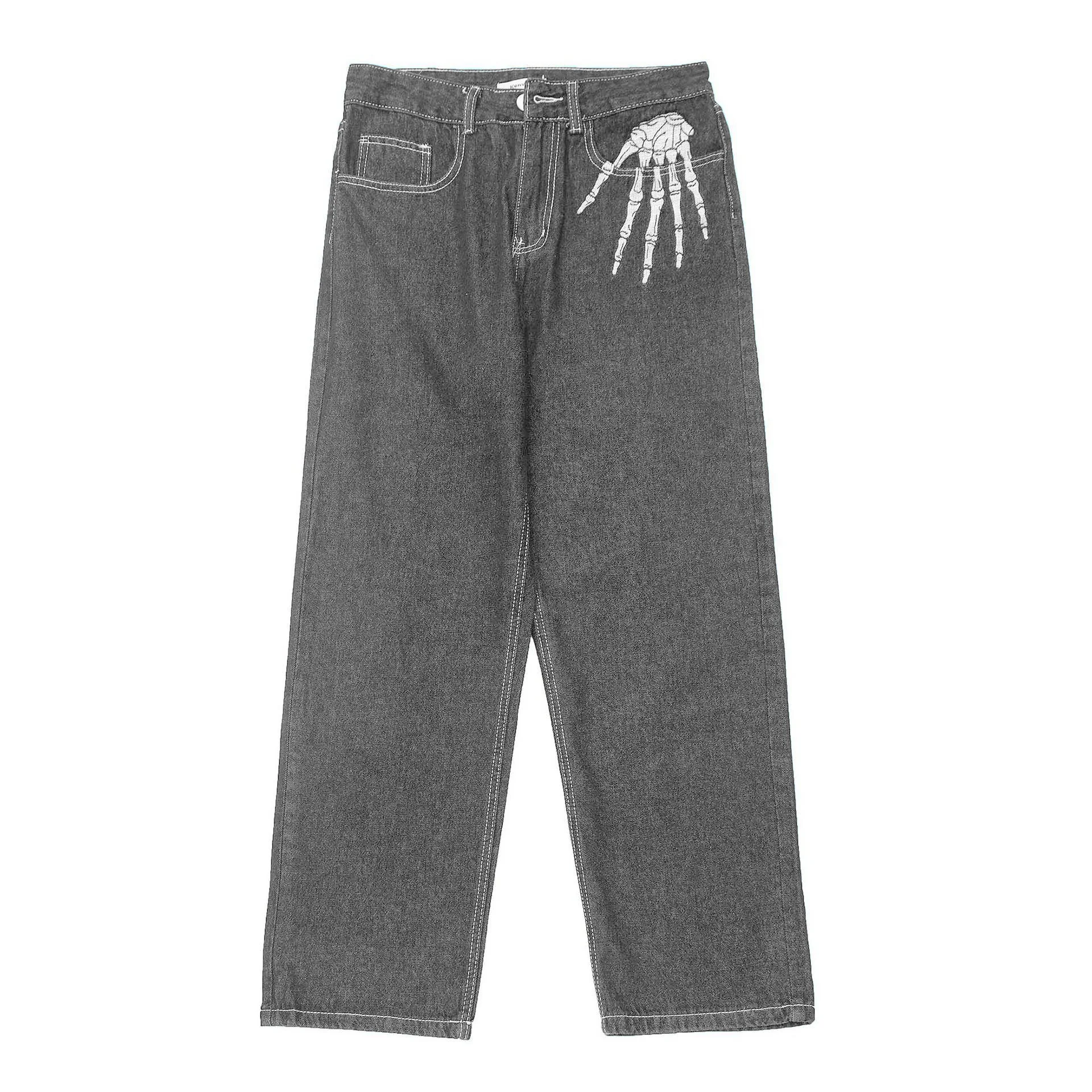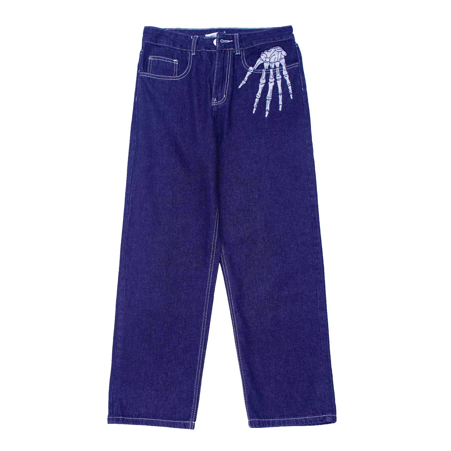 Hot Sale Men's Jeans Black Cutout Embroidery Baggy Jeans Custom Leather Logo Men Casual Denim Straight Jeans