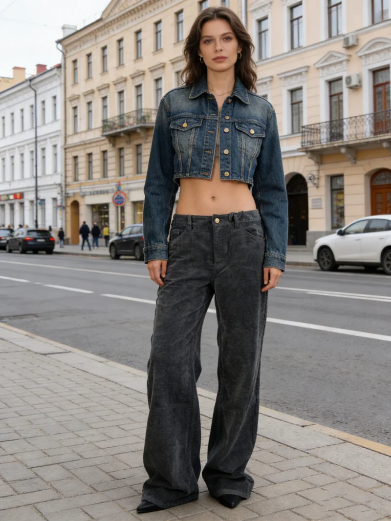Hot Selling Women Soft Loose Fit Denim Pants High Waist Wide Leg Casual Trousers with Pockets