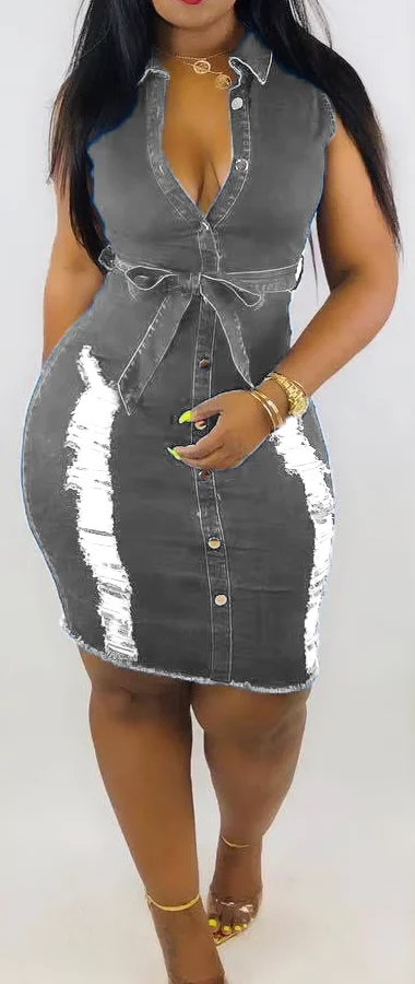 2023 Latest Sleeveless Turn Down Collar Denim Dress Women Casual Dresses Jeans Dress