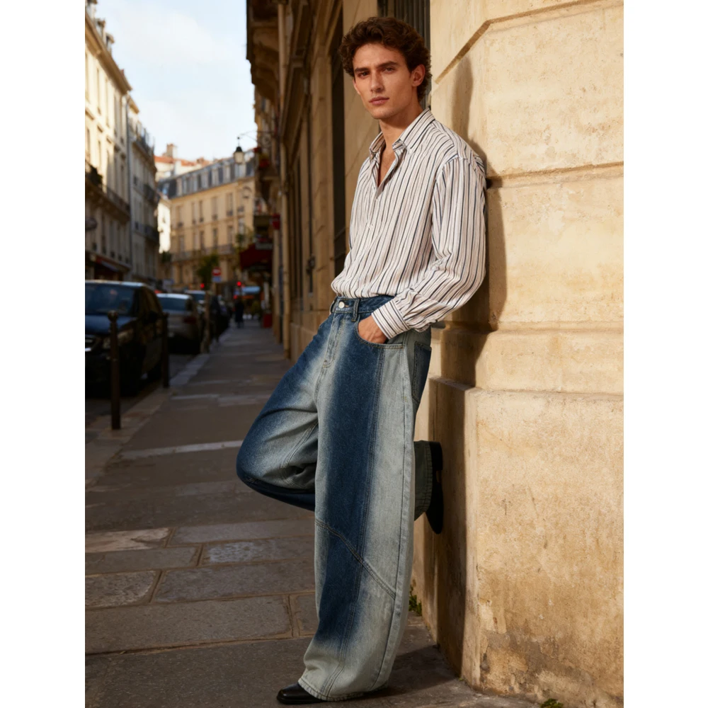 Men's Baggy Wide Leg Jeans High Quality Gradient Denim Pants Fashionable Streetwear for Male