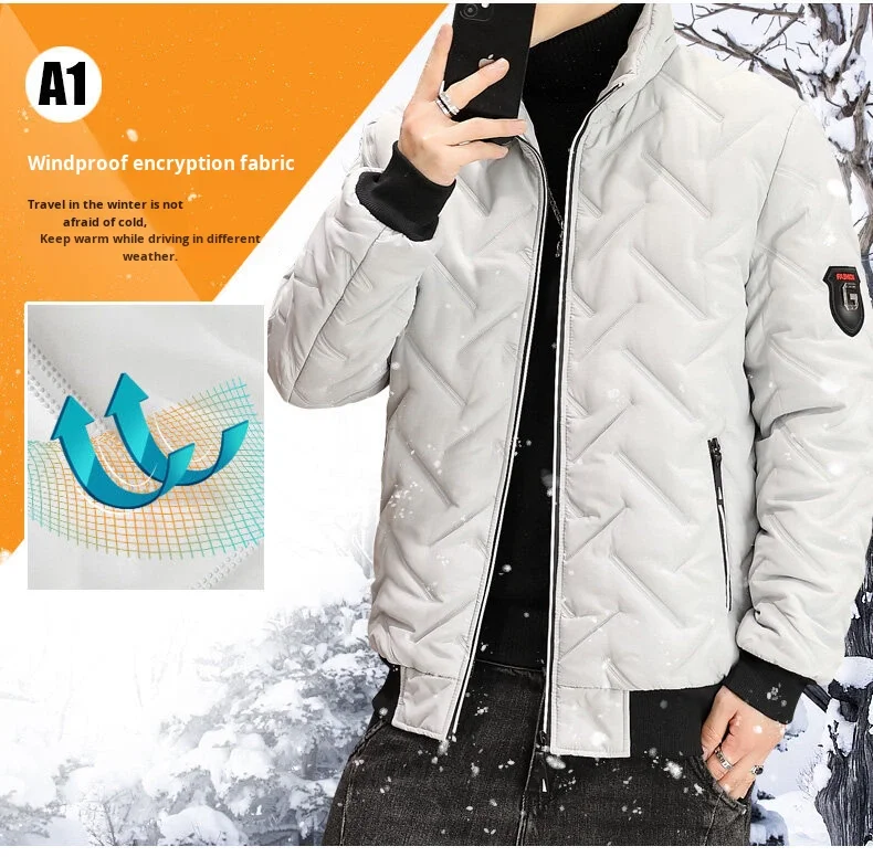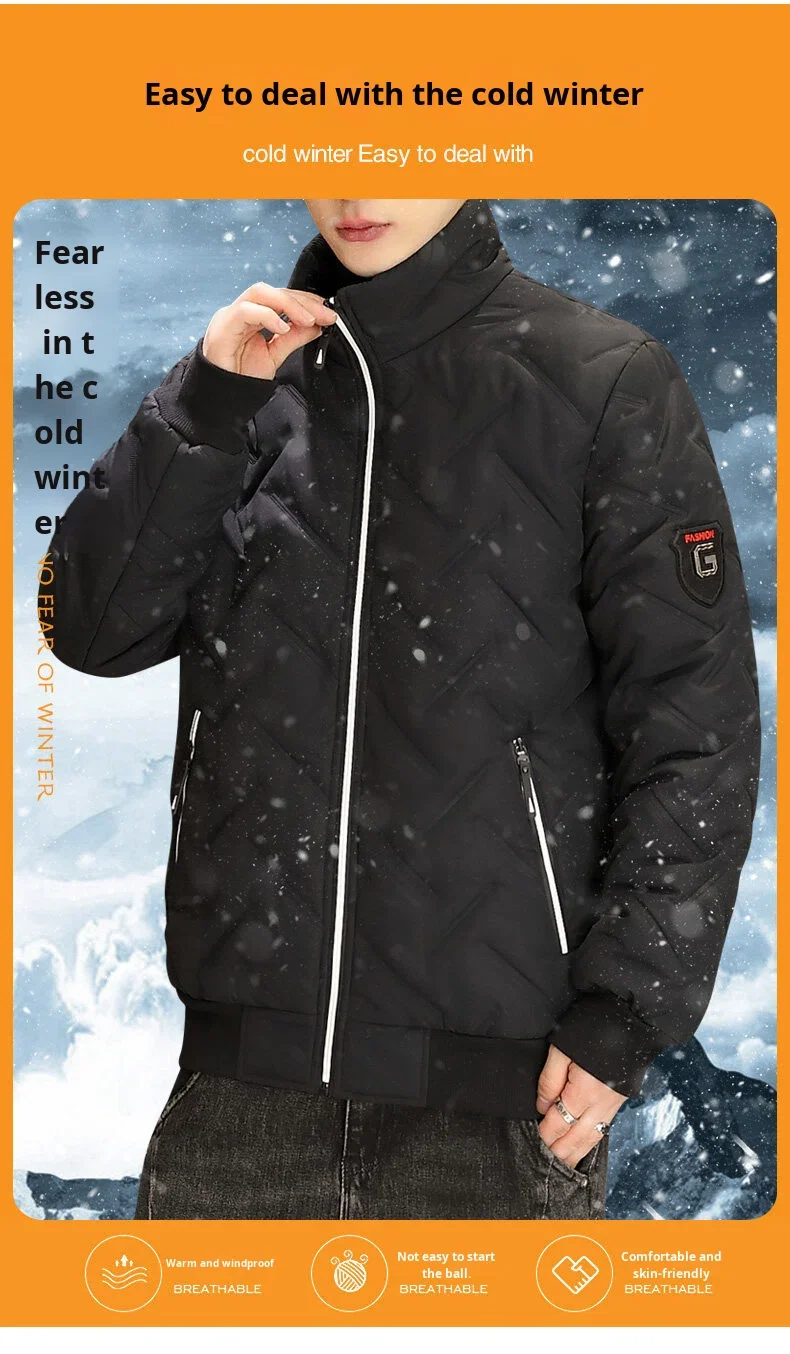Men's Bomber Jacket Autumn Winter New Korean Style Trendy Short Stand Collar Lightweight Streetwear Heart Pattern