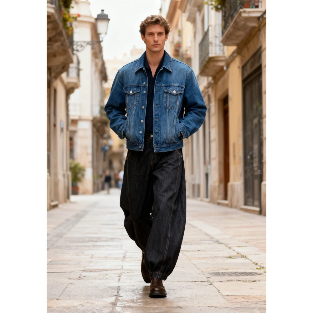 Men's Machete High Street Top Line Split Stitching Casual All-match Loose Wide-leg Pants Denim Straight Style