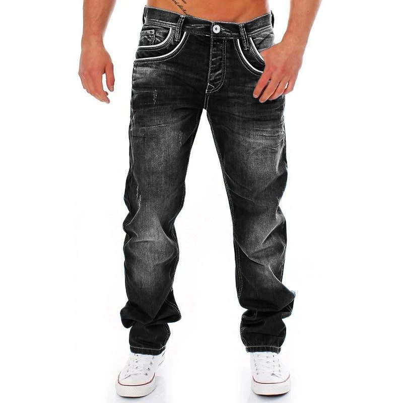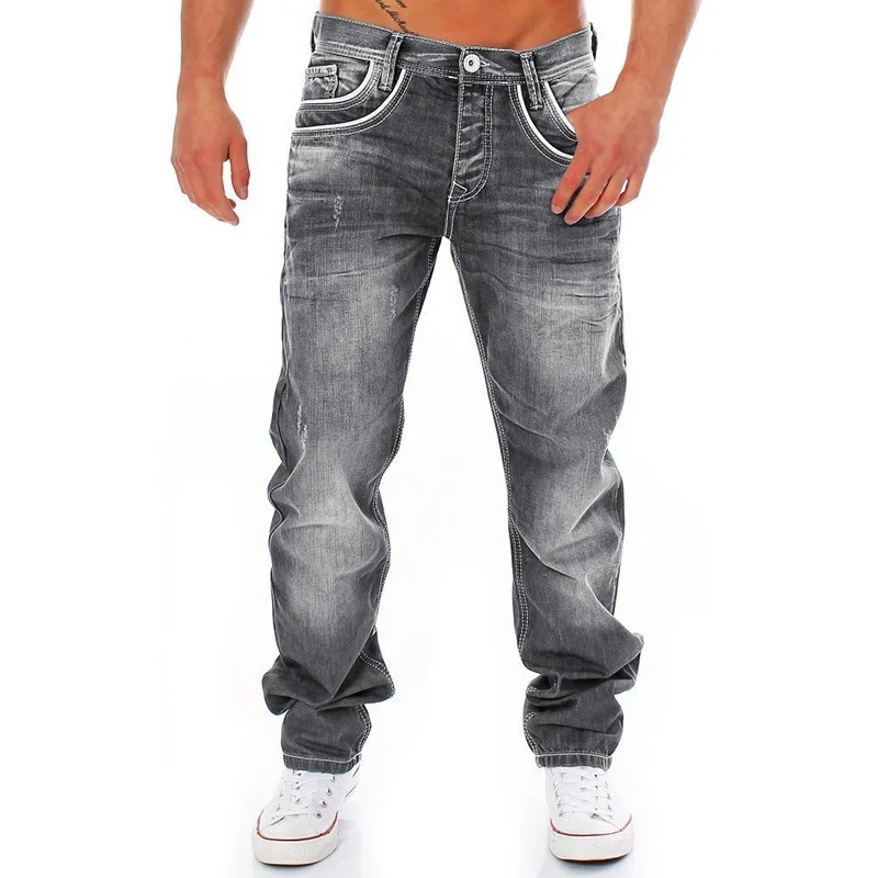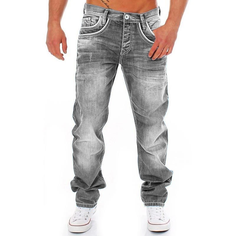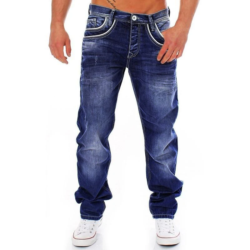 Men's Multi Pocket Baggy Retro Jeans Fashion Plus Size Wide Leg Denim Trousers