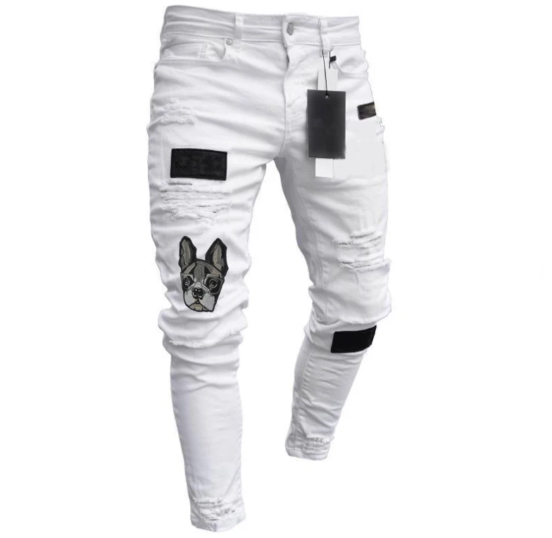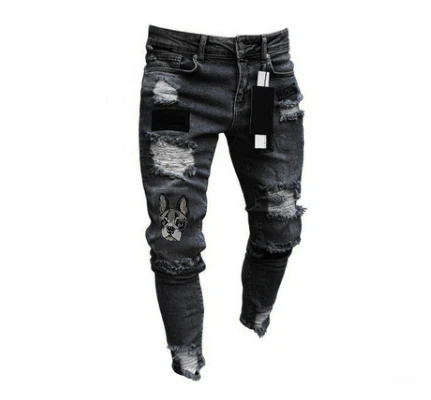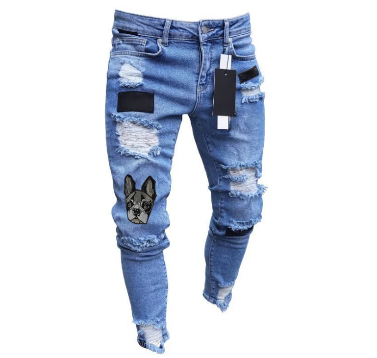 Mens Stacked Jeans Ripped Skinny Hole Distressed Patched Fashion Denim Pants In Bulk