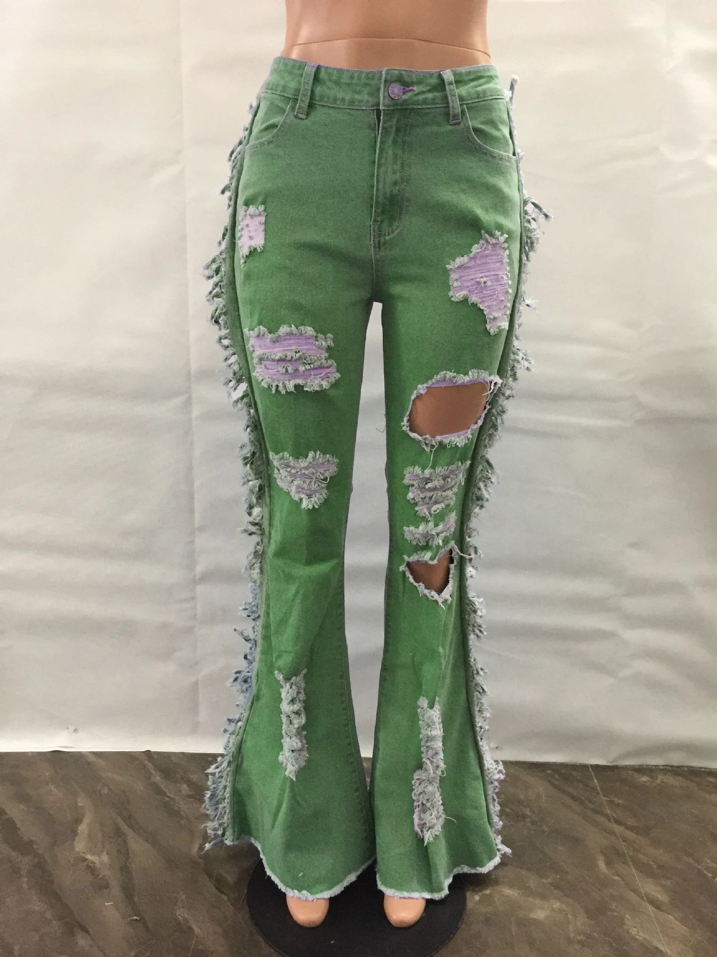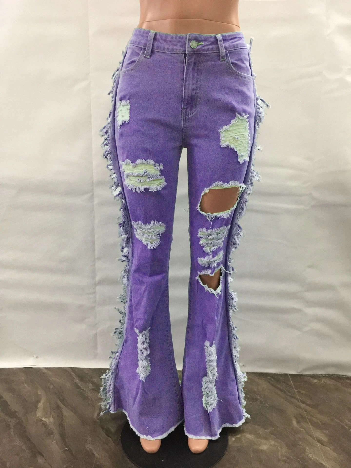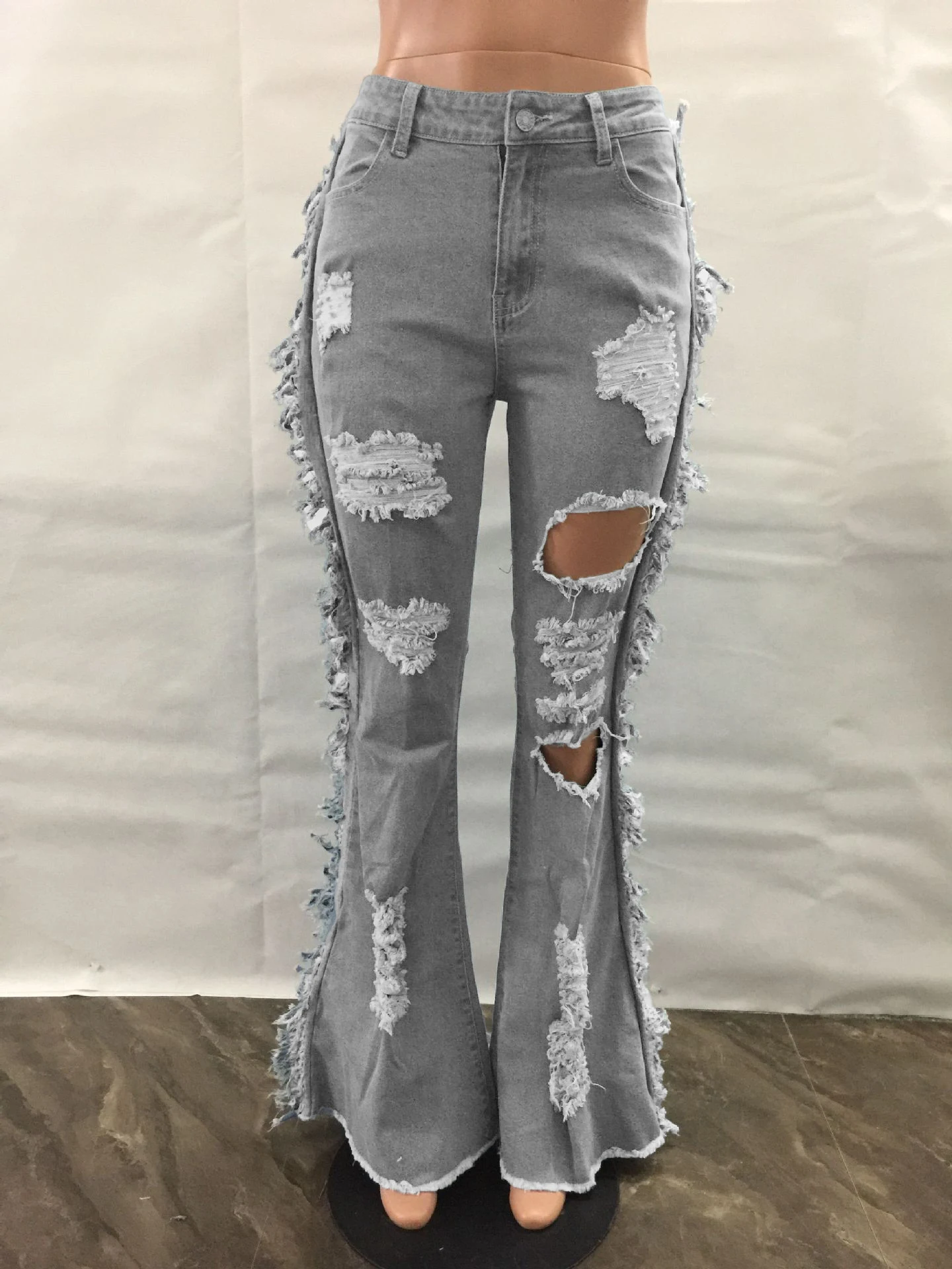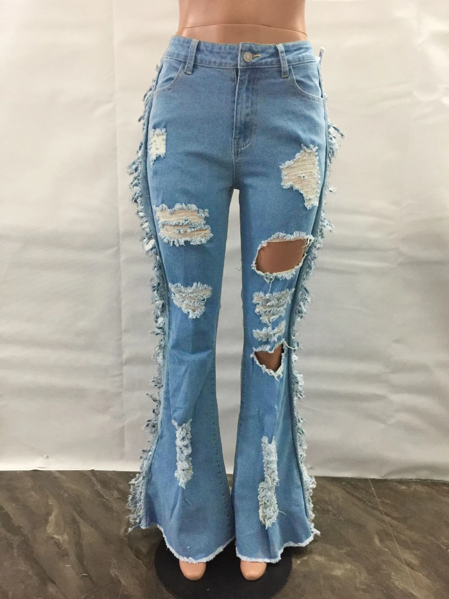 New Arrival European And American Summer Plus Size Women Tassels Ripped Jeans