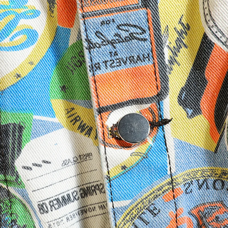 New Autumn Designer Graffiti Camouflage Denim Jacket Men's Fashion Color Jean Jacket