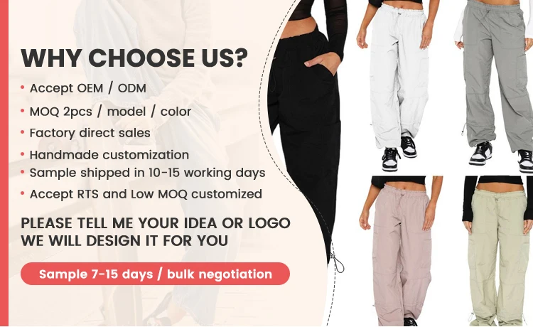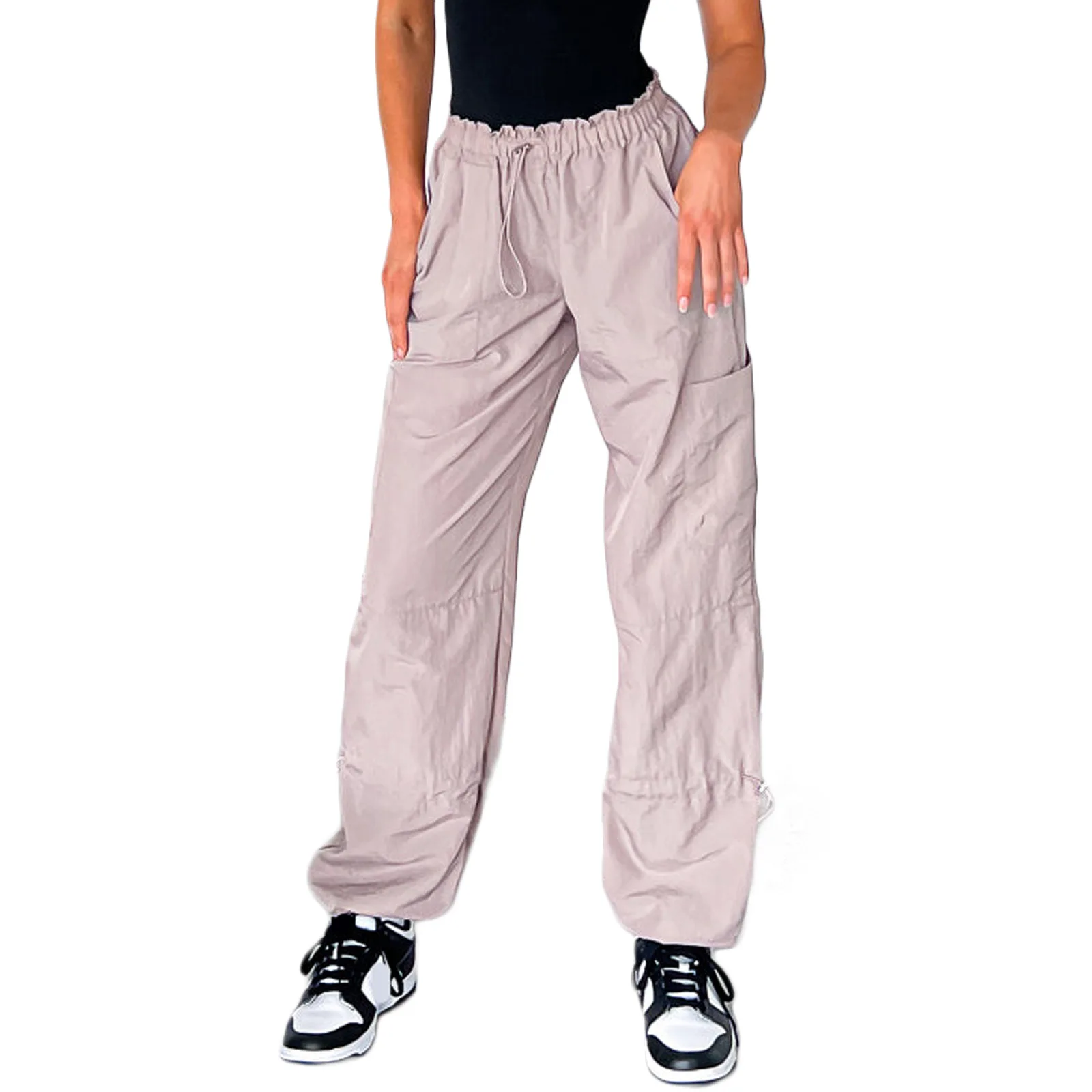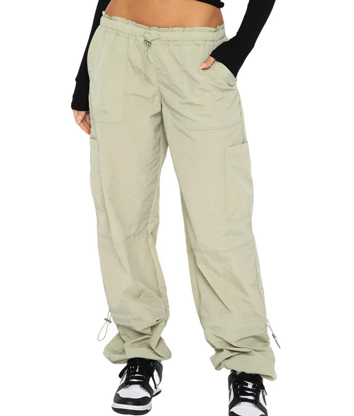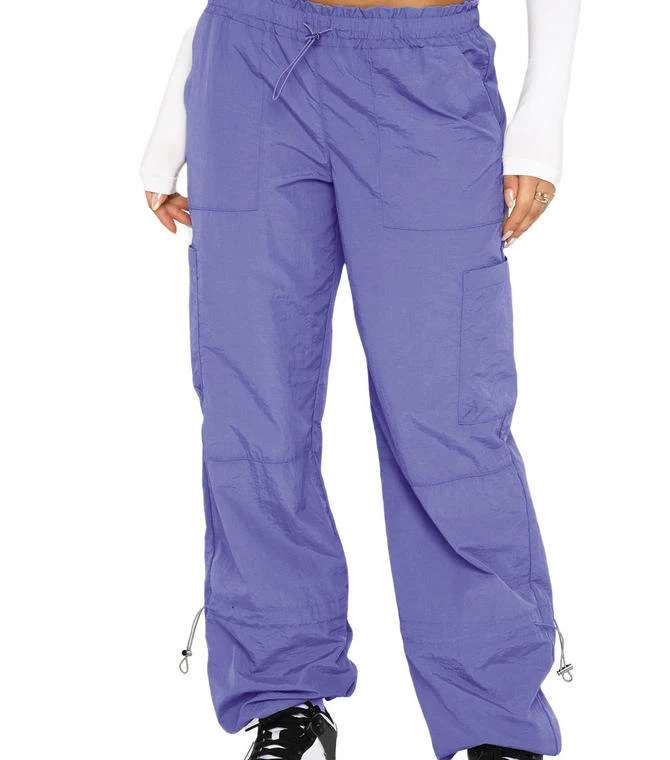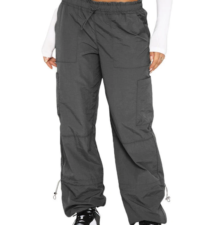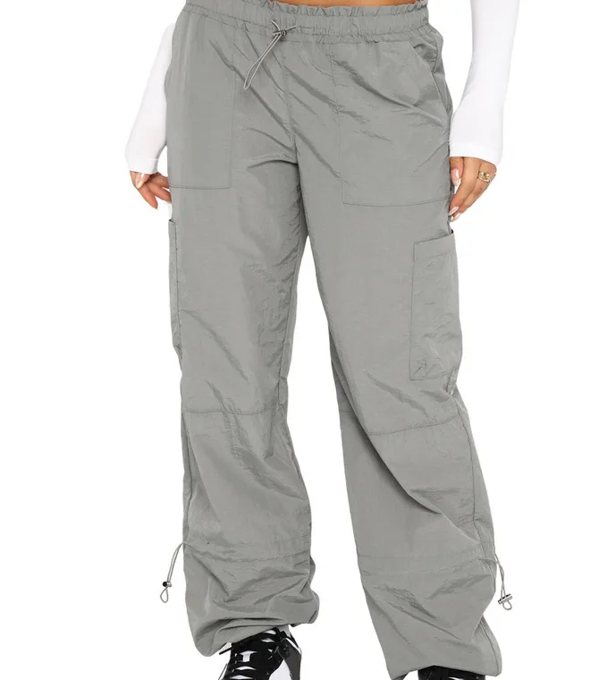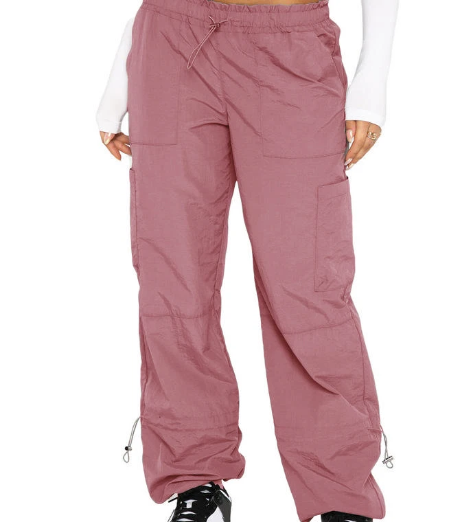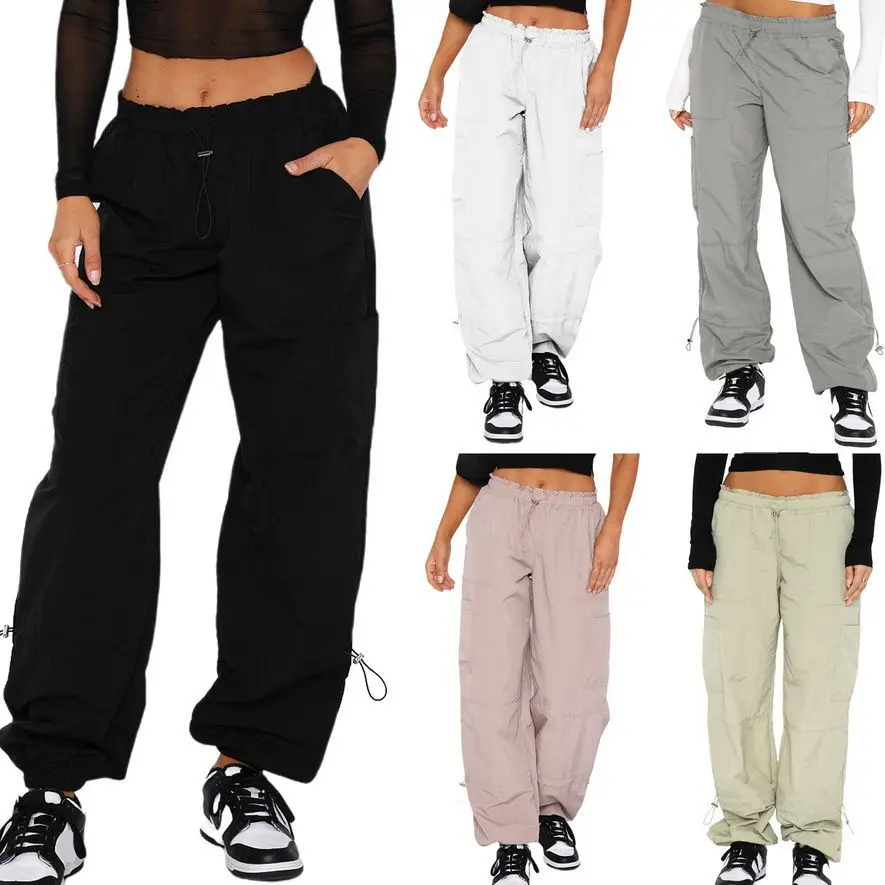 New Custom Women's Cargo Pants & Trousers Streetwear Fashion Solid Color Loose Elastic Waist Mid Rise
