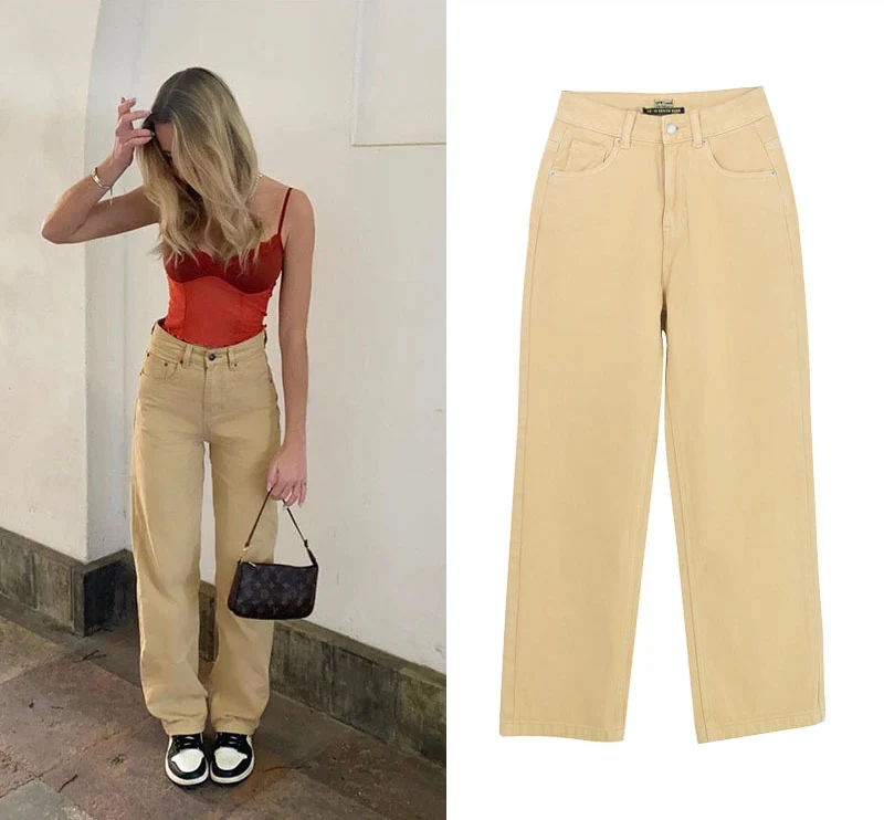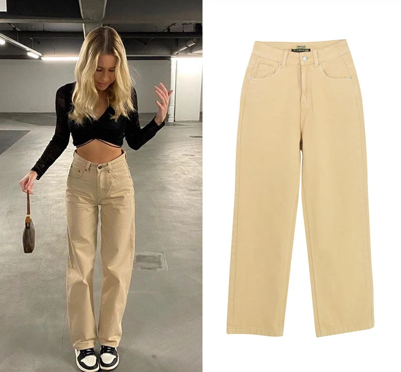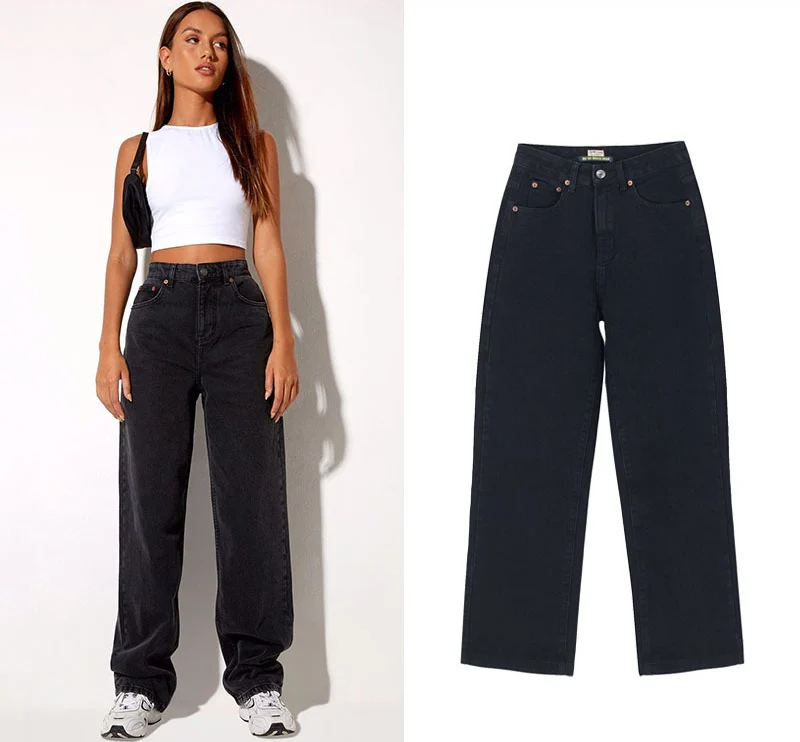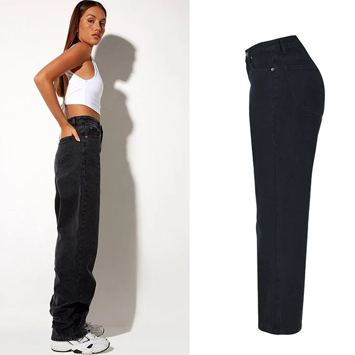 New European American Style High Waisted Loose Straight Cool Black Denim Trousers Mom Jeans Women's Baggy Jeans