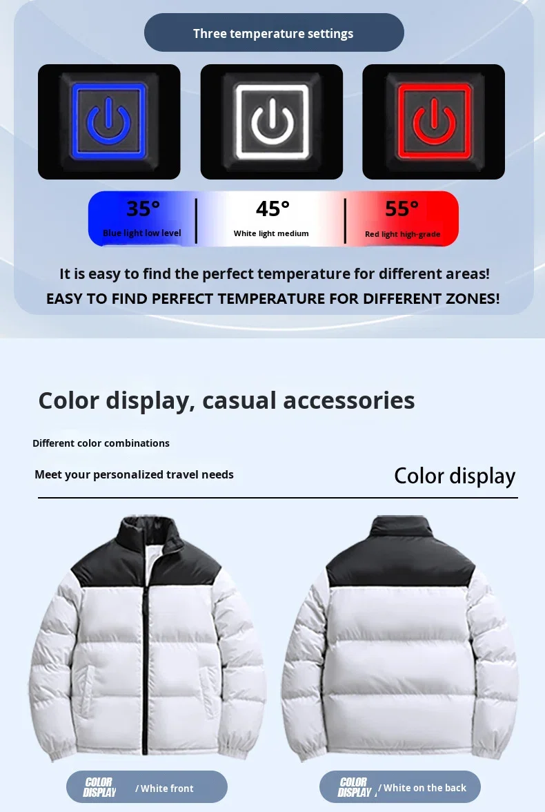 New Heating Polyester Trench Jacket 6-Zone Heating Intelligent Constant Temperature Windproof Multiple Color