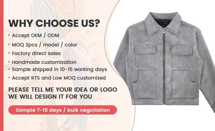 OEM Clothing Winter Autumn Custom Logo Suede Jacket Men High Street Multi-pocket Loose Zipper Casual Men's Solid Color Jacket