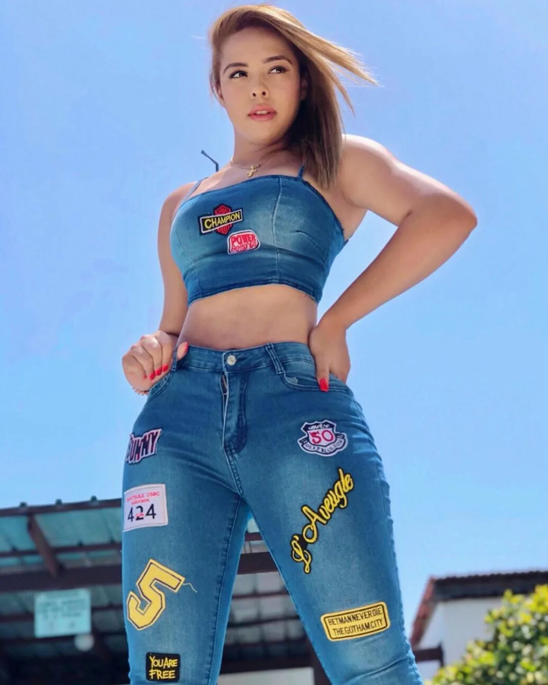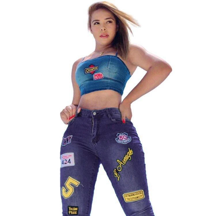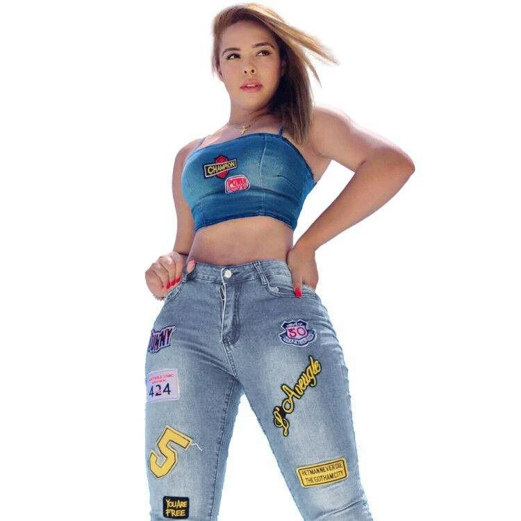 off Shoulder Straight Strap Tops Skinny Denim Jeans Trousers Fashion Latest Design Sequin Floral Bow Hole Two Piece Sets Women