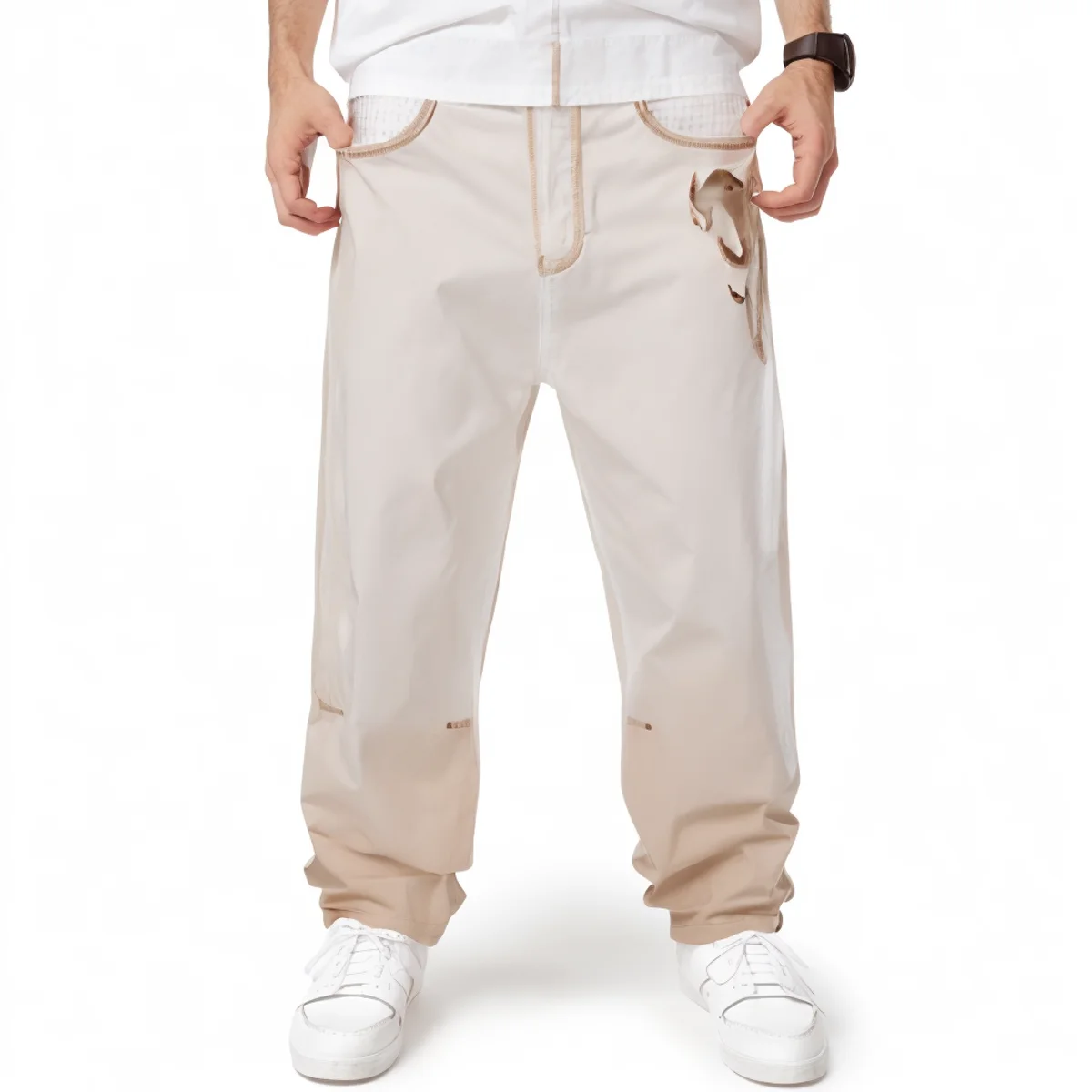Plus Size Men's Jeans Hip Hop Skateboard Baggy Jeans Men Plain Fashionable Jeans Pants For Men European Brands