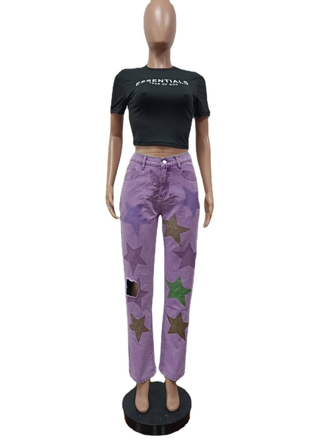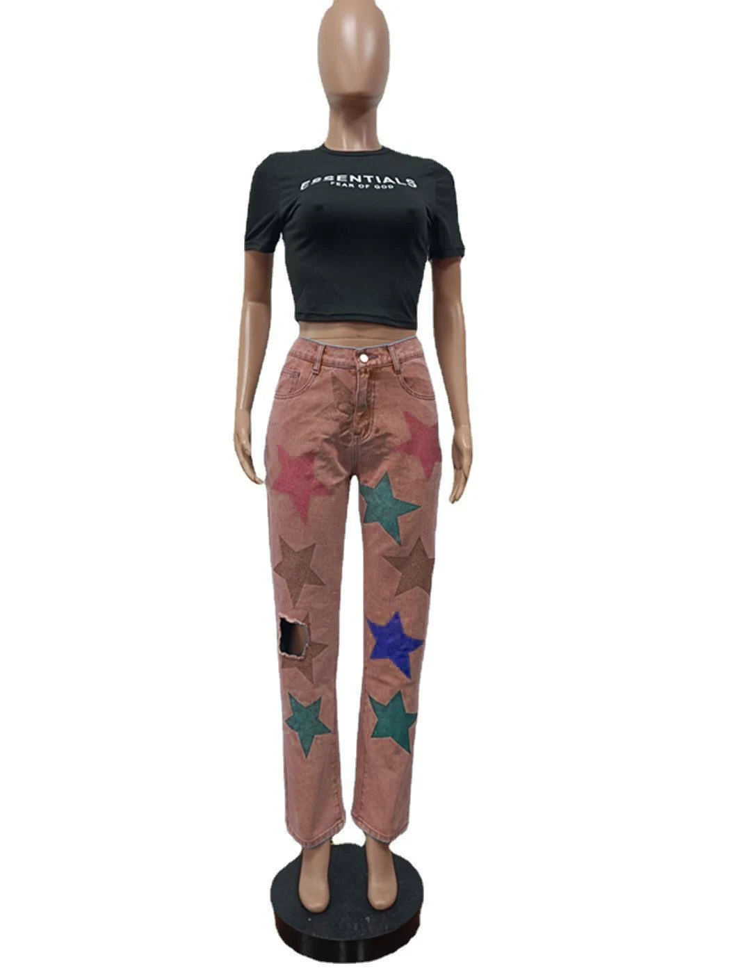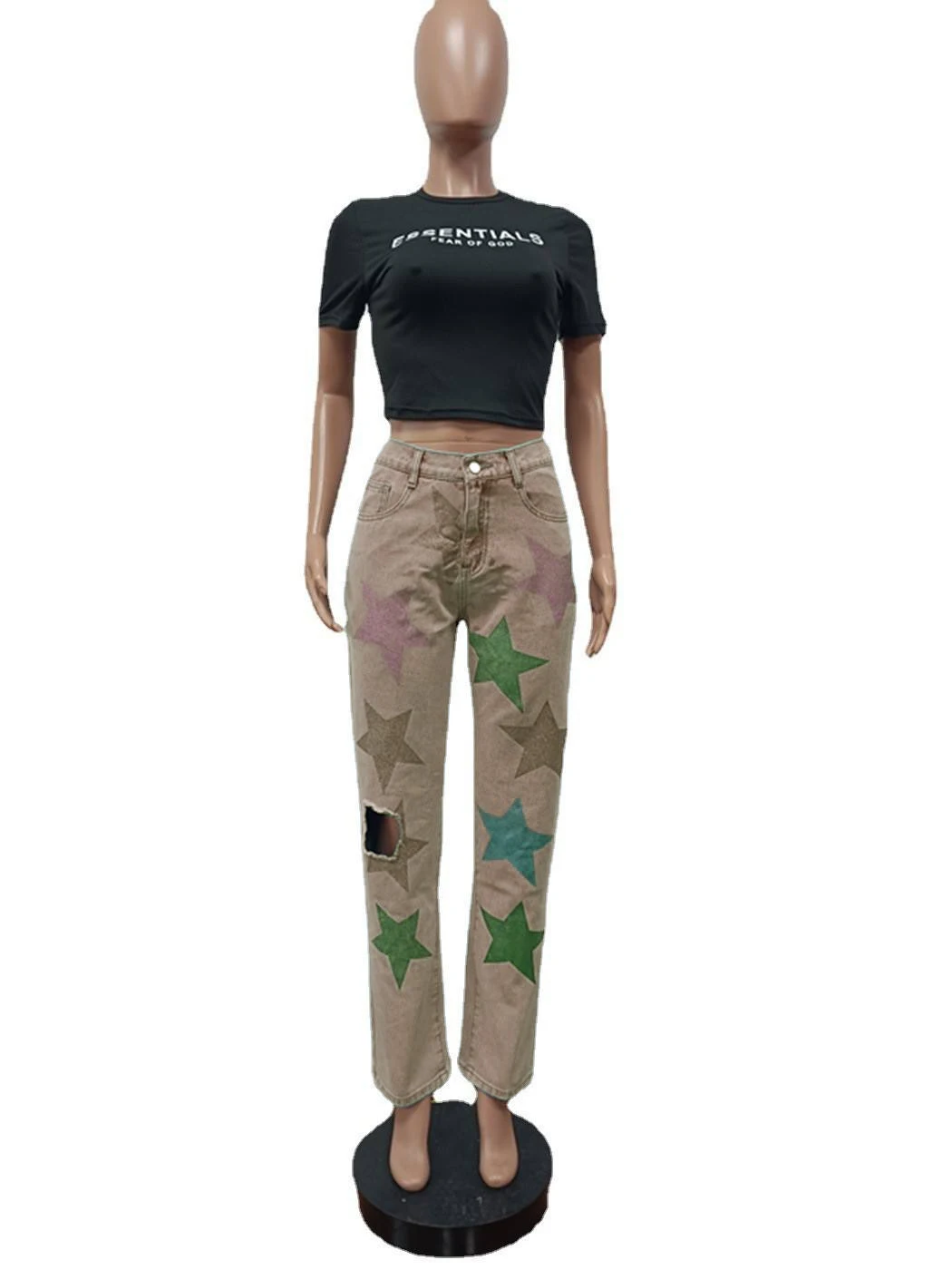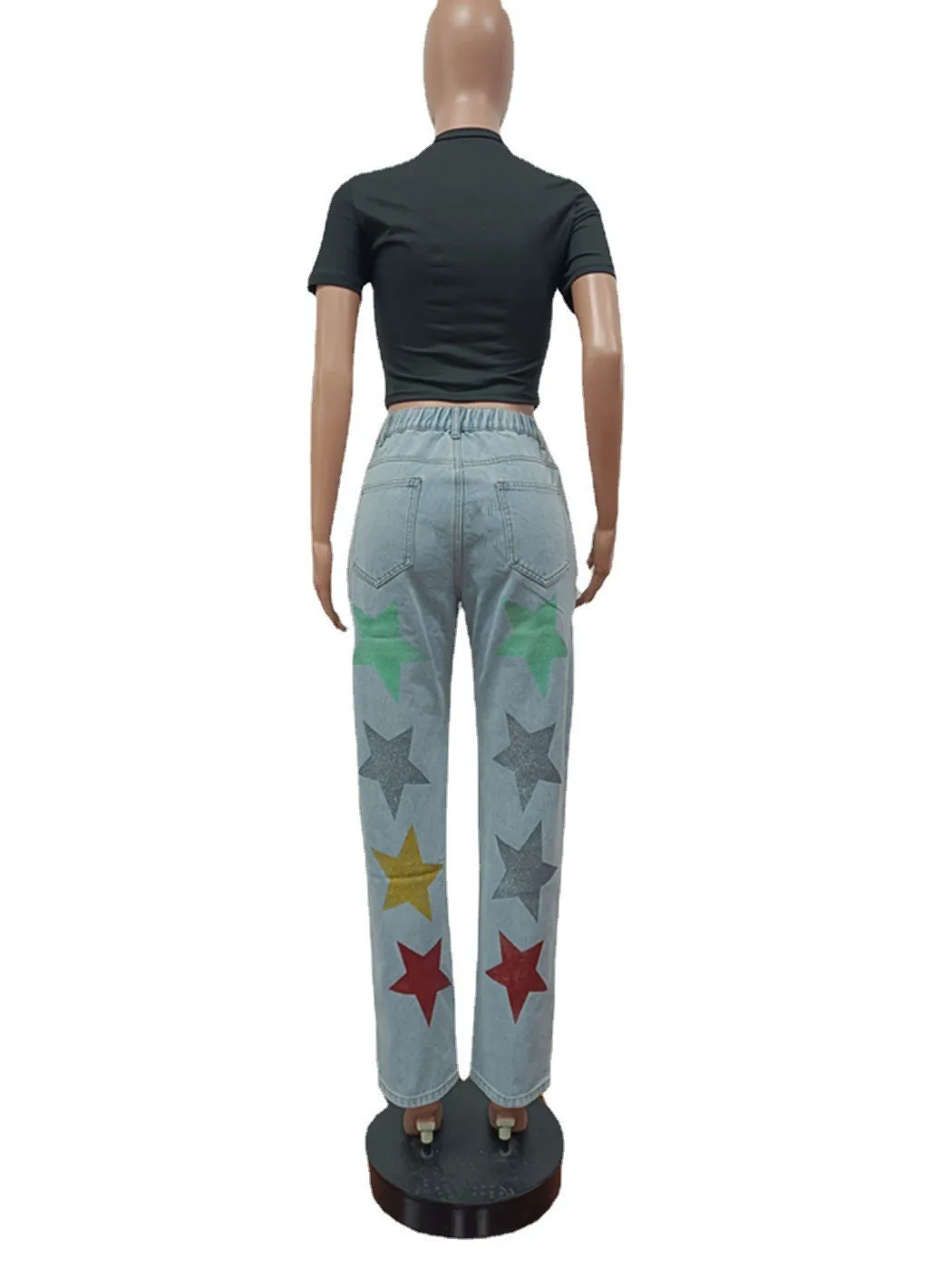 Popular Jeans with Sequins Star Pants for Women Ladies Pants Straight Fit Denim Jeans for Women Latest Design Jeans Pants