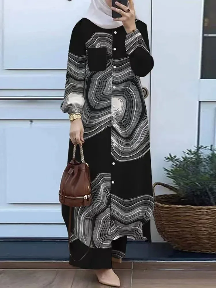 S-5XL Women's Retro-Style Long Abaya Breathable Robe with Ruffled Hem Dress Long Sleeves Embossed Printing for Adults