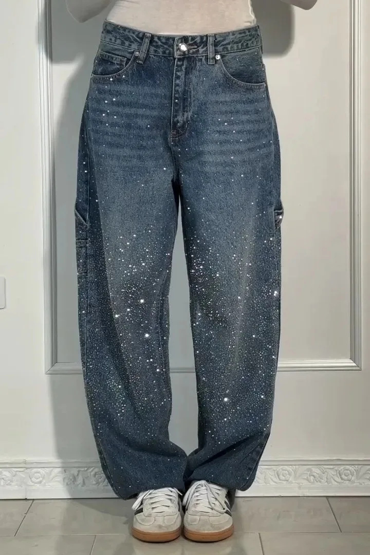 Spring/Summer for New European American Starry Rhinestone Straight High Waist Slimming Casual Trousers