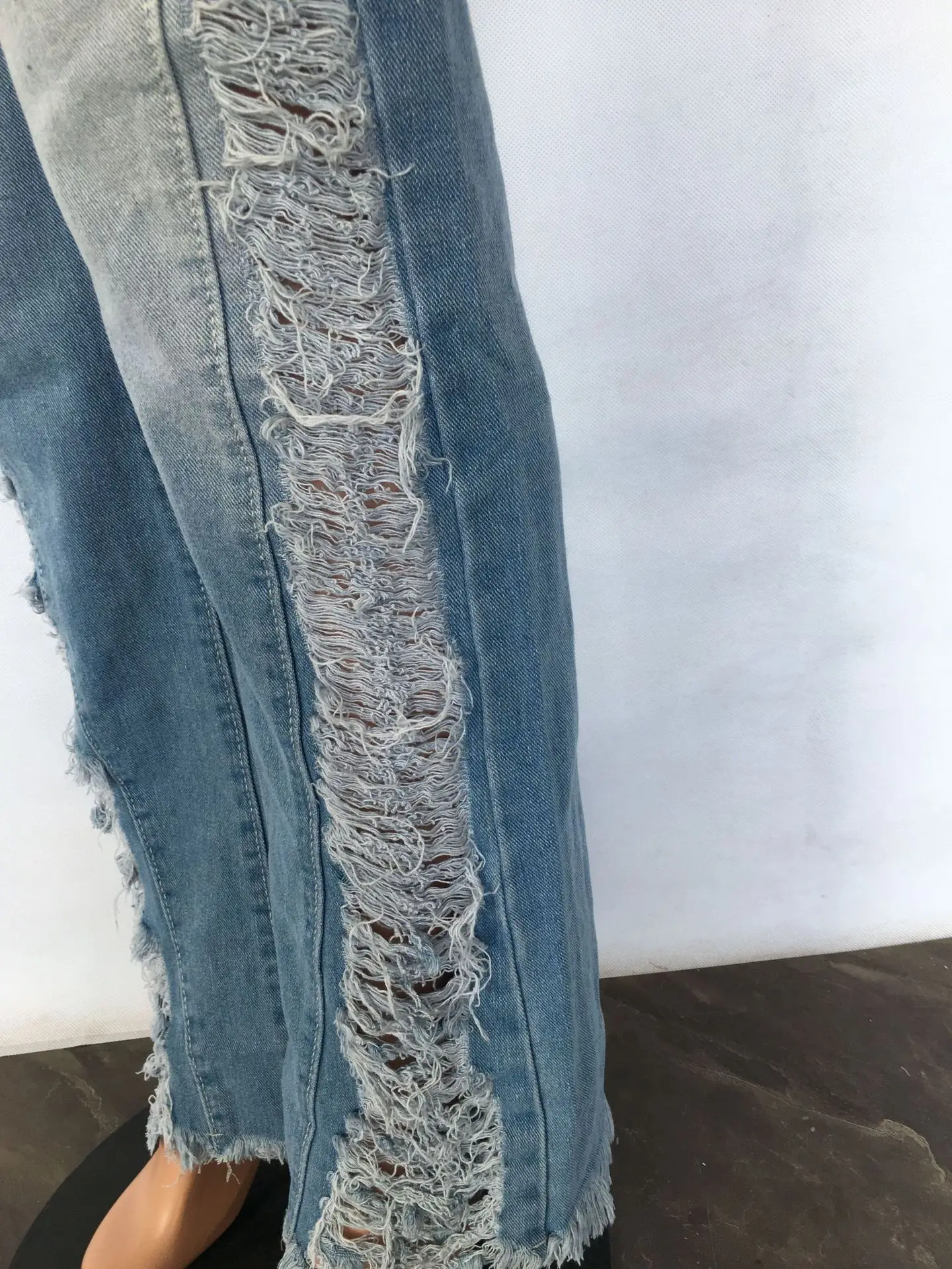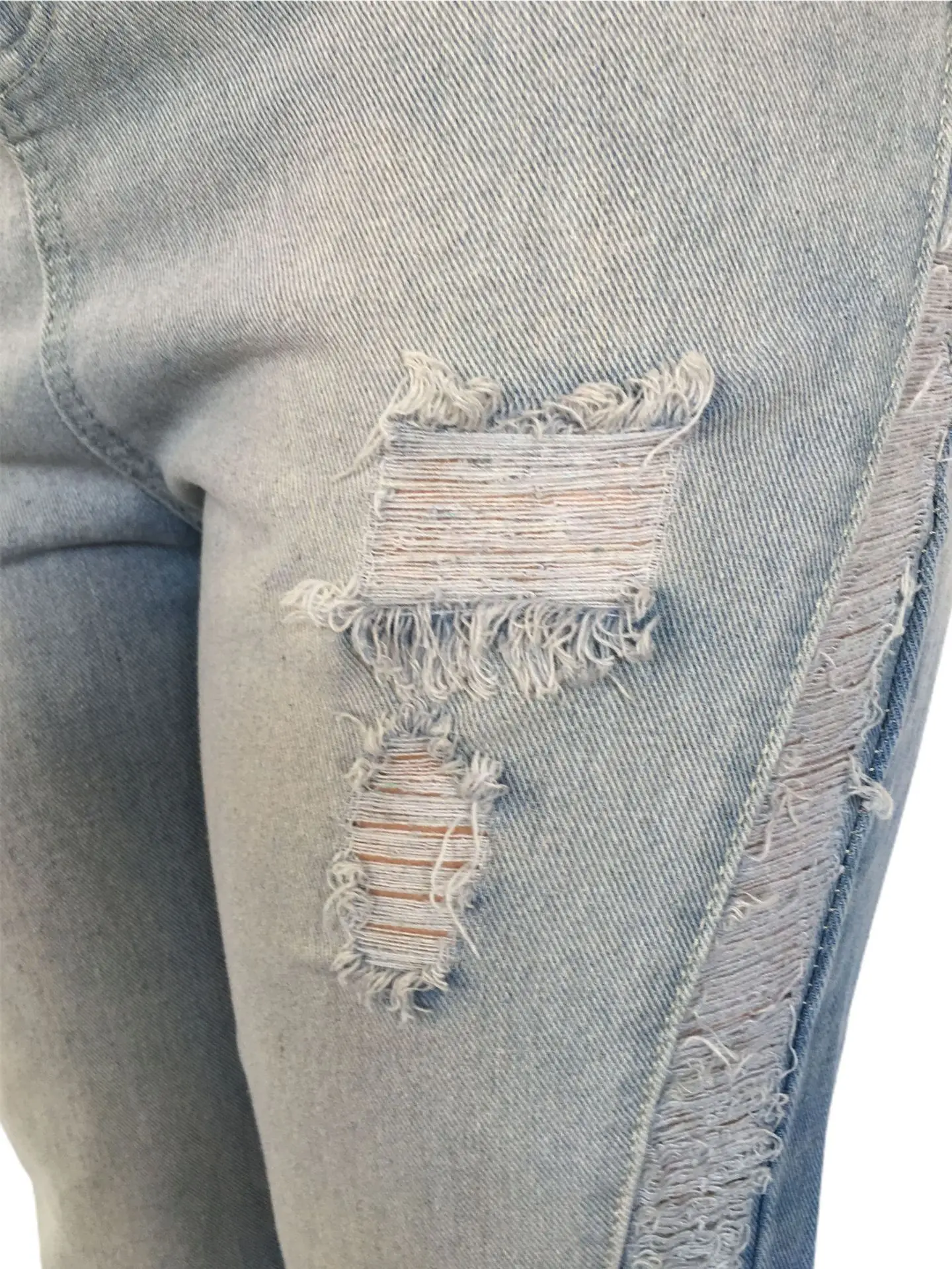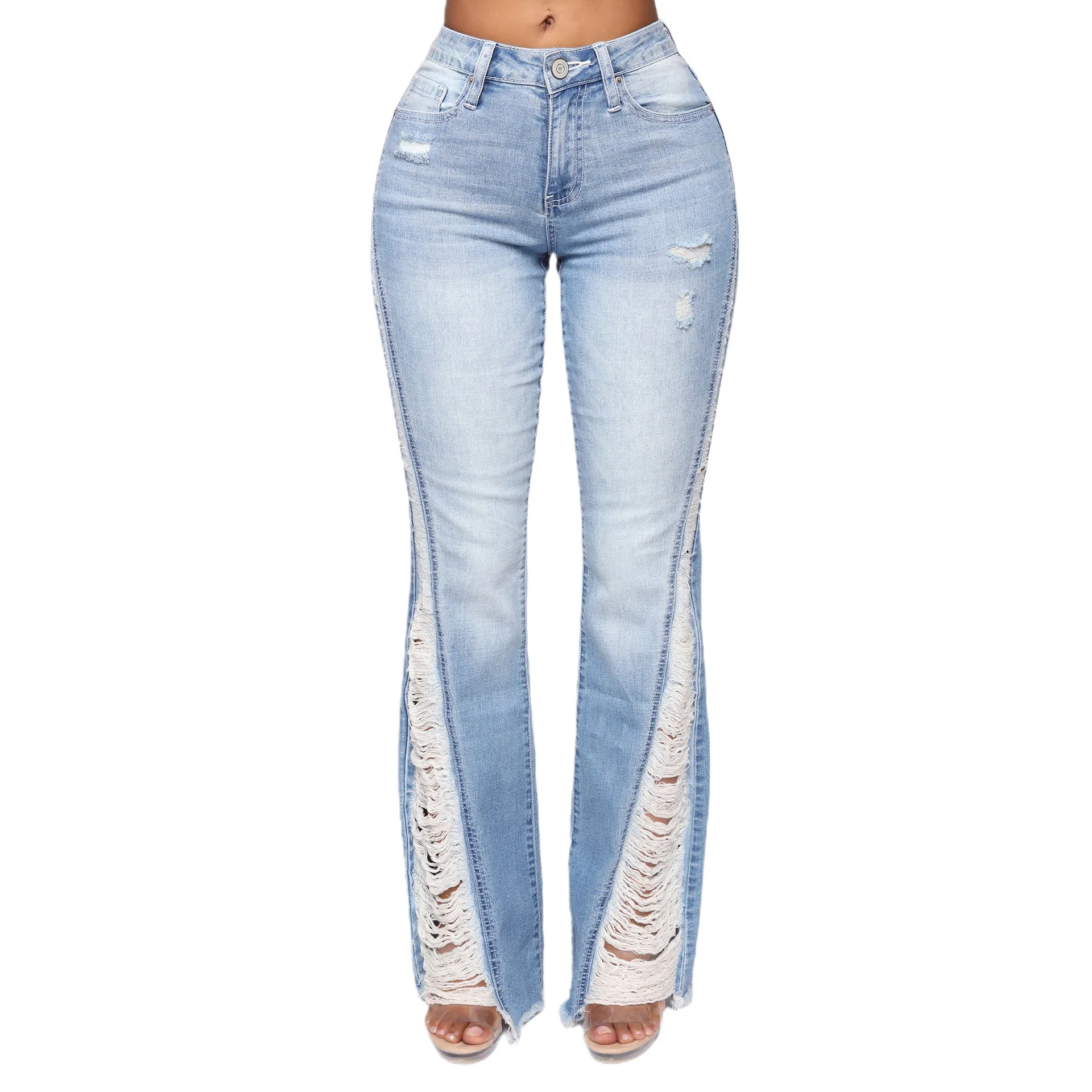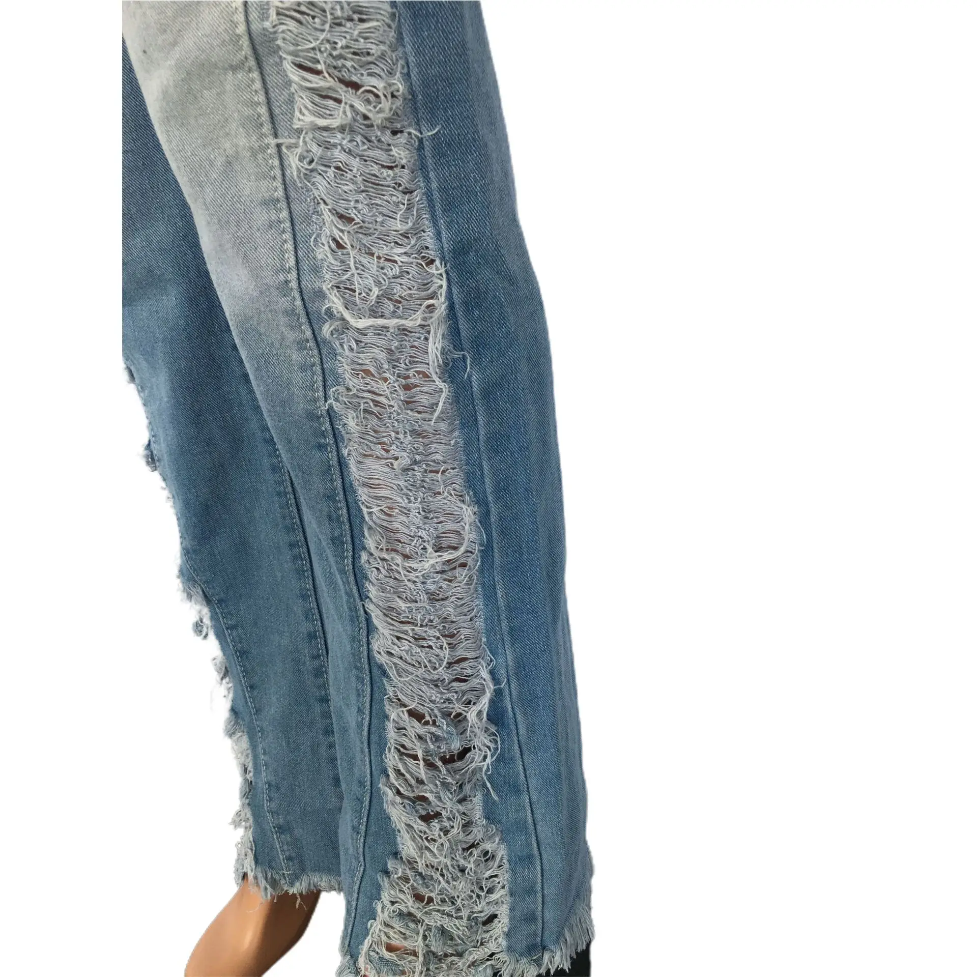 SSY Hot Sale Casual Women Breech-based Light Blue Plus-sized Ripped Denim Trousers Jeans Lady Pants