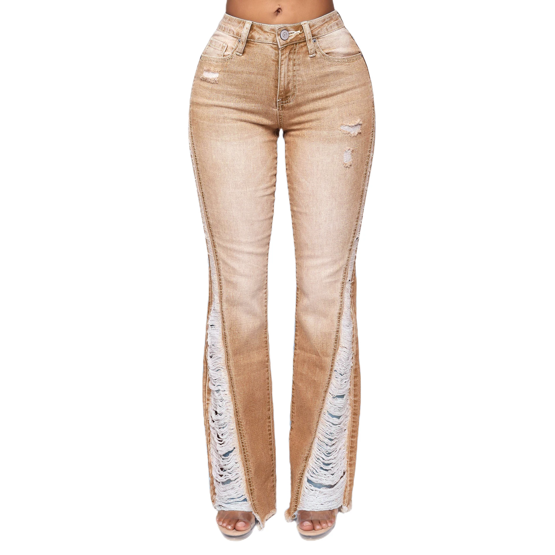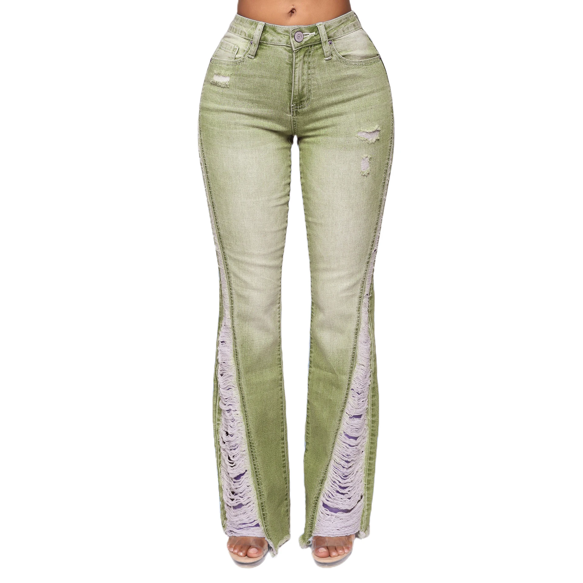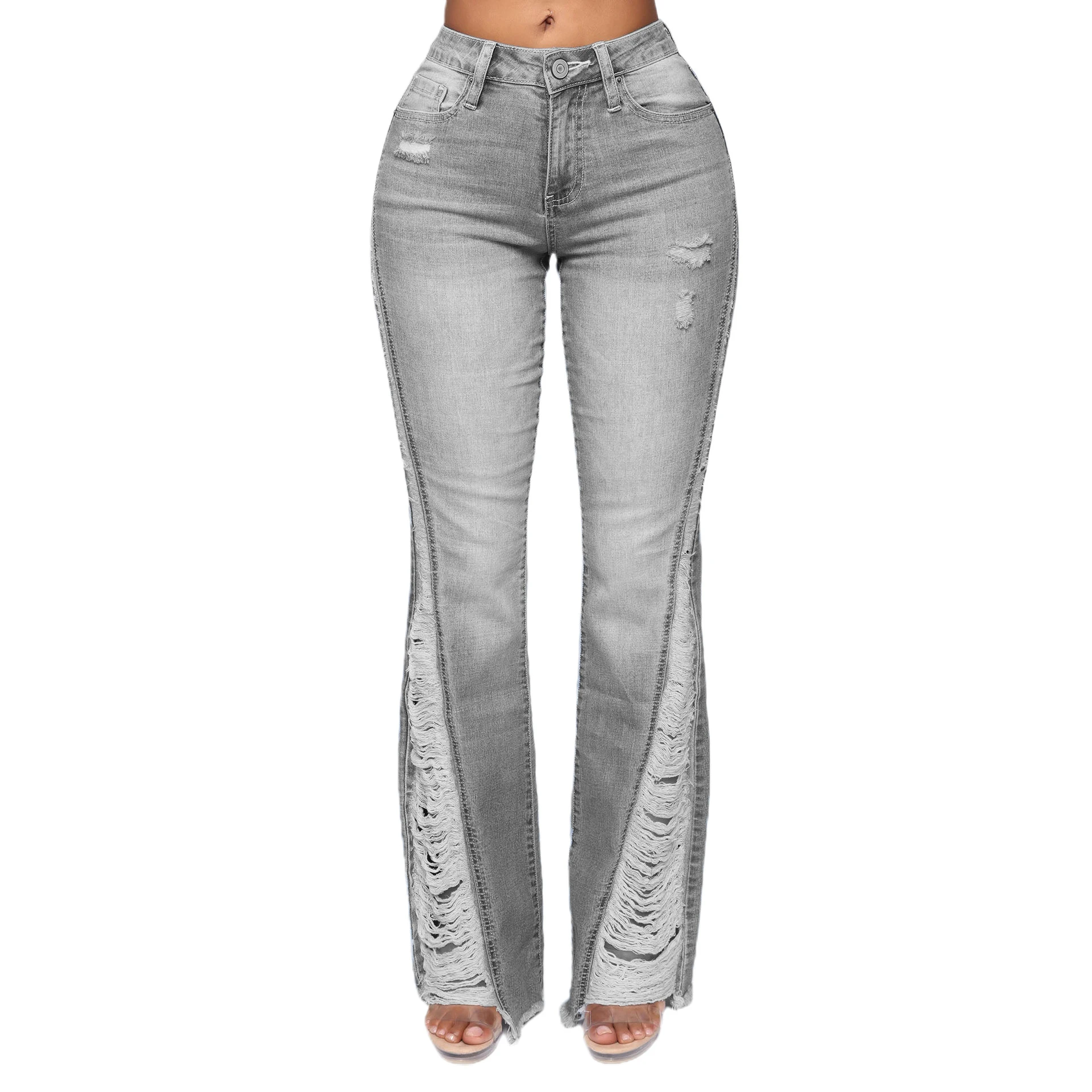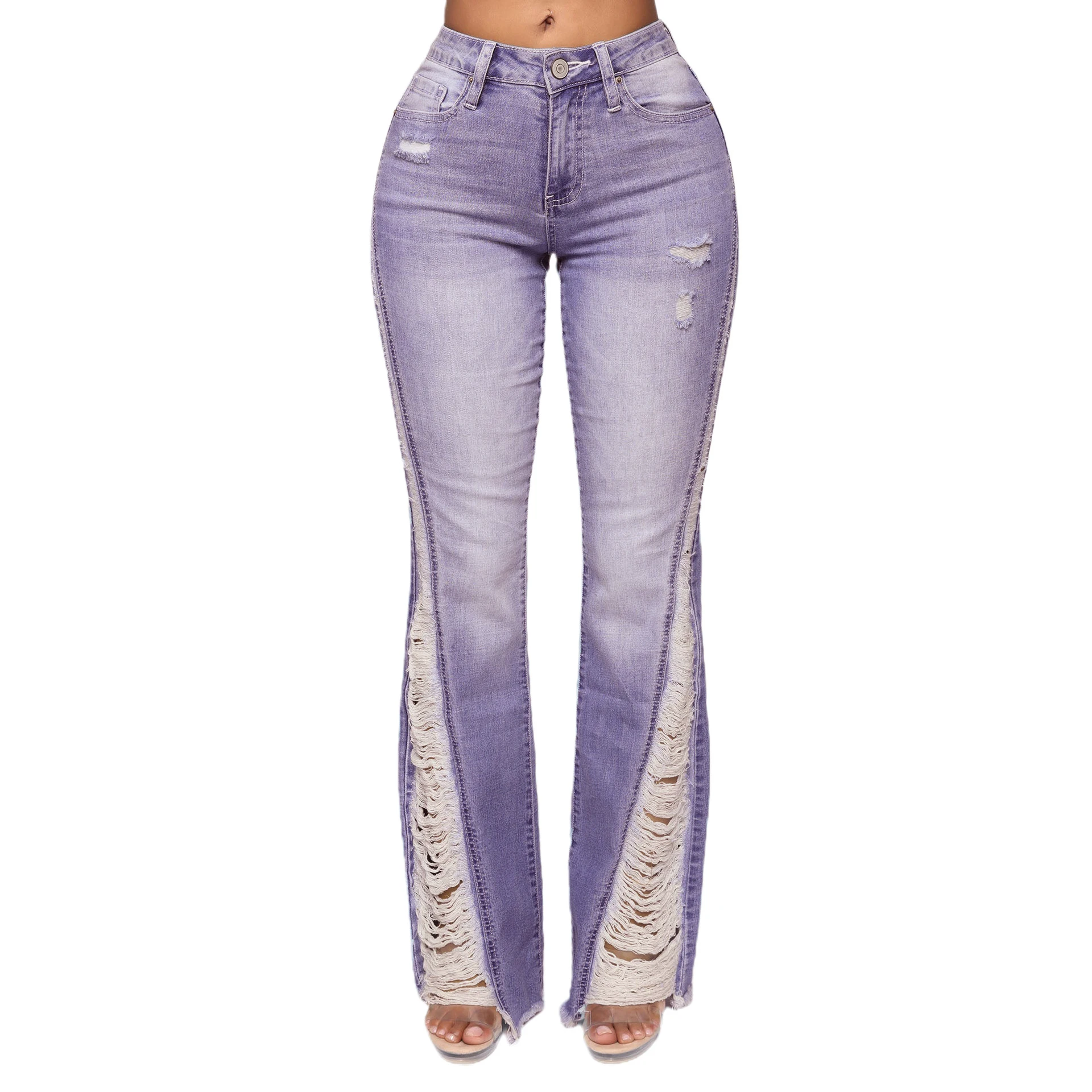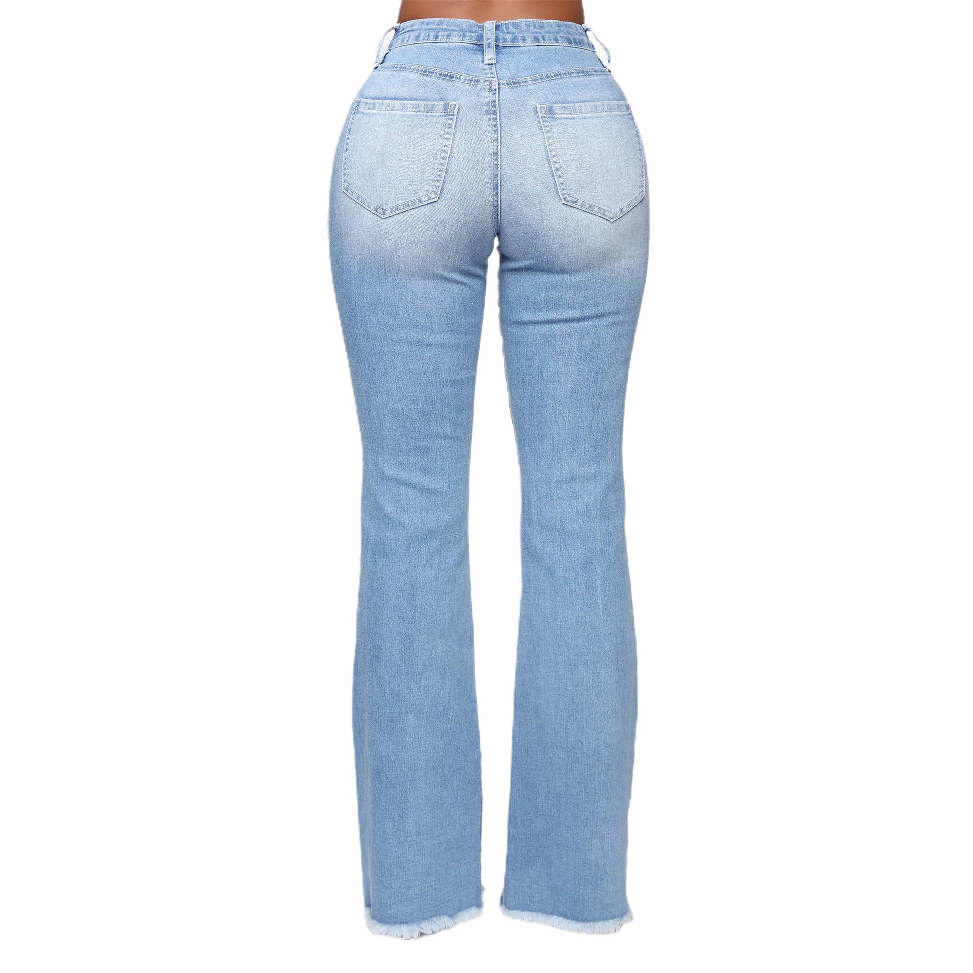 SSY Hot Sale Casual Women Breech-based Light Blue Plus-sized Ripped Denim Trousers Jeans Lady Pants
