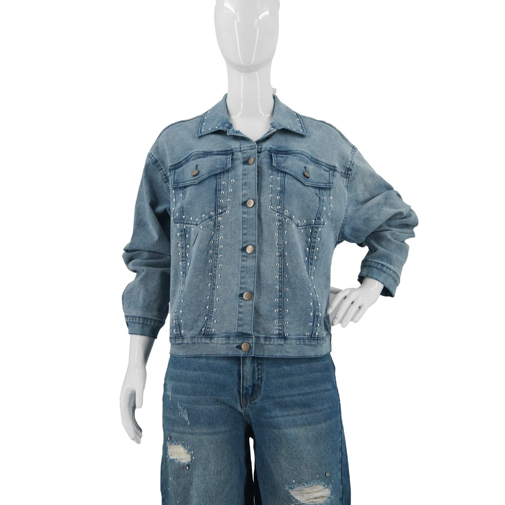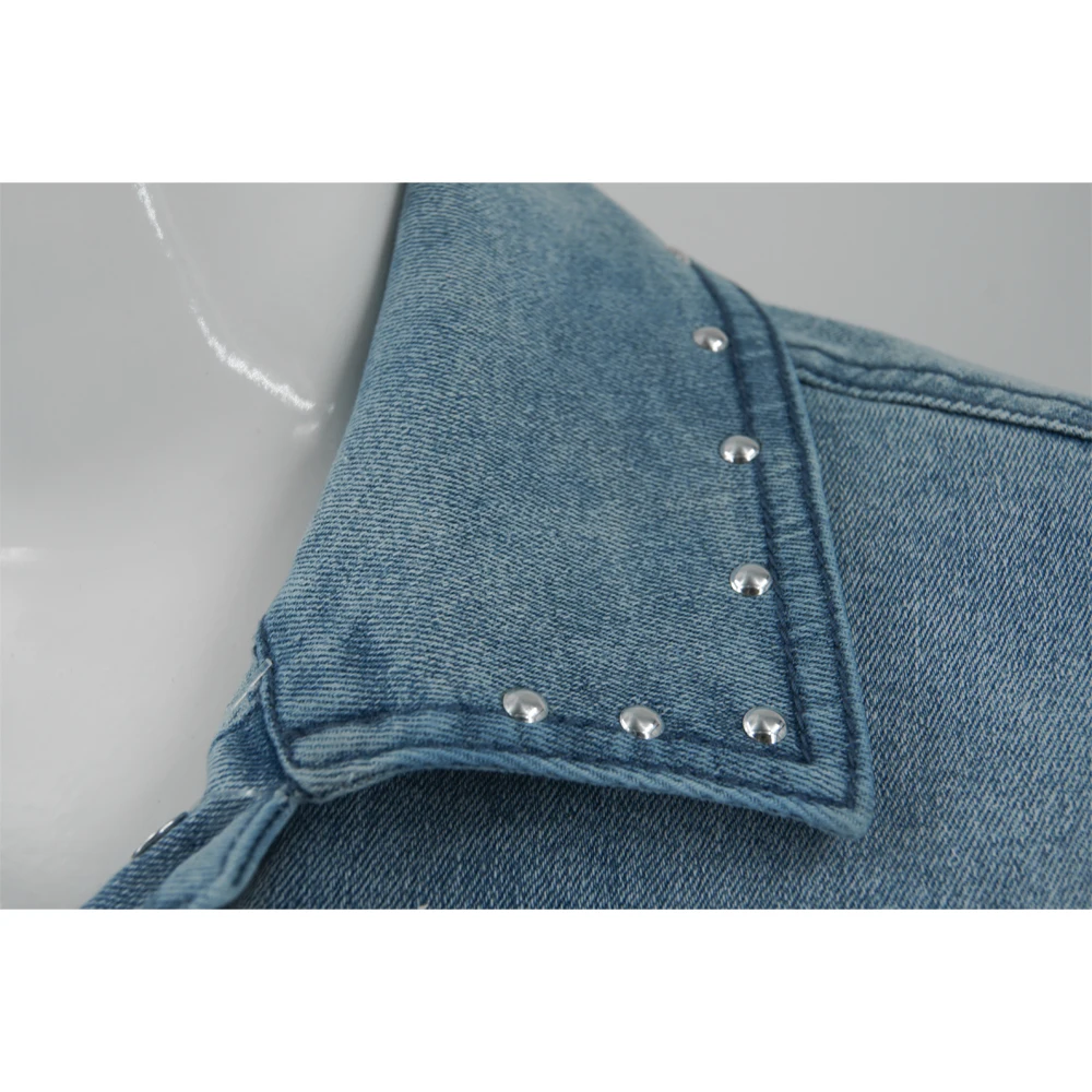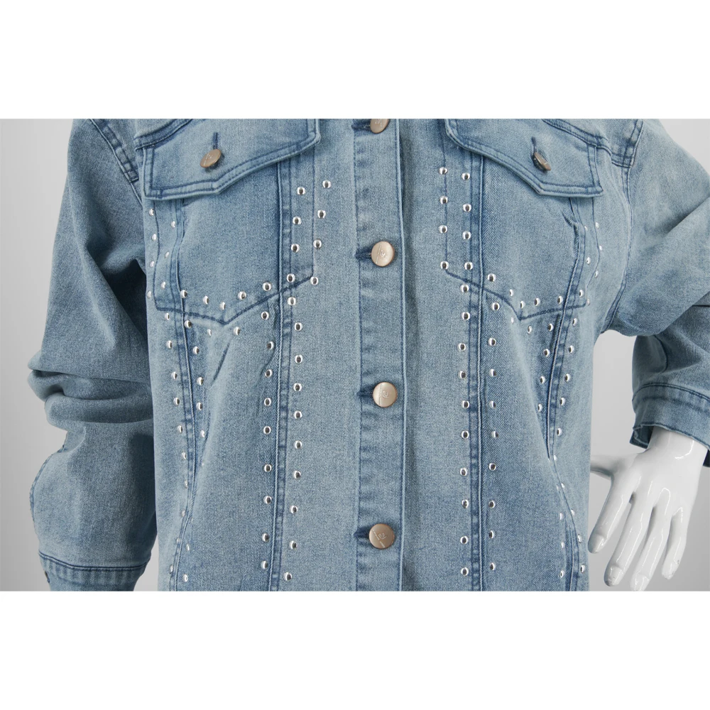 Stylish Collared Denim Shirt Jacket for Women Loose Fit Button Front Jean Coat Casual Daily Fashion Outerwear
