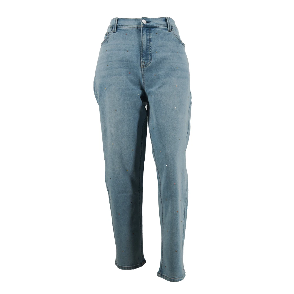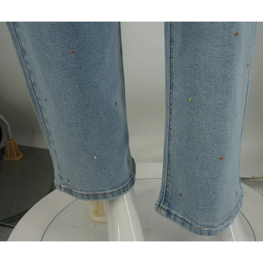 Stylish Women's High Waist Slim Jeans with Rhinestone Design Fashion Casual Sparkly Denim Pants