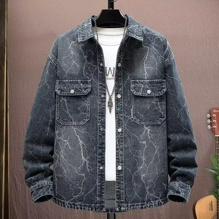 Teenagers Full Print Workwear Corduroy Bomber Jacket Men's Korean Streetwear Trendy Handsome Hooded Coat Spring Autumn Casual