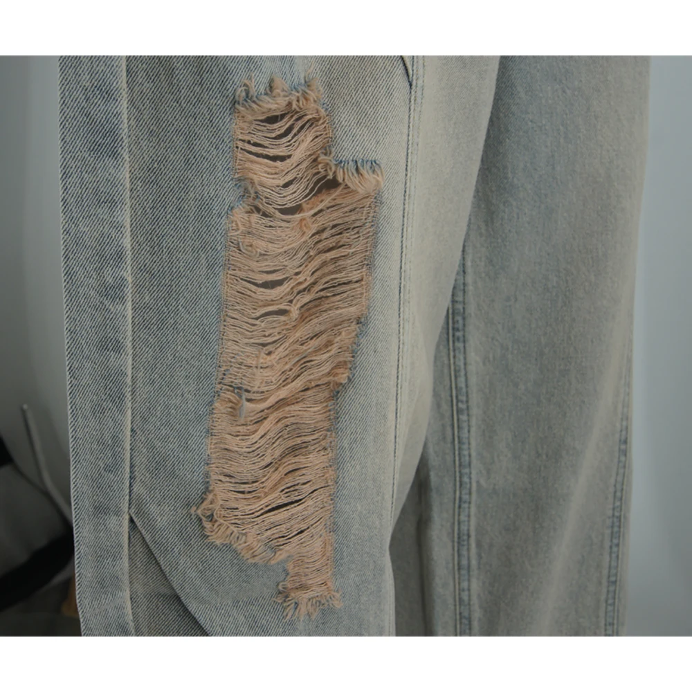 Trendy Women's Light Blue Baggy Jeans with Distressed Design High Waist Fashion Denim Trousers